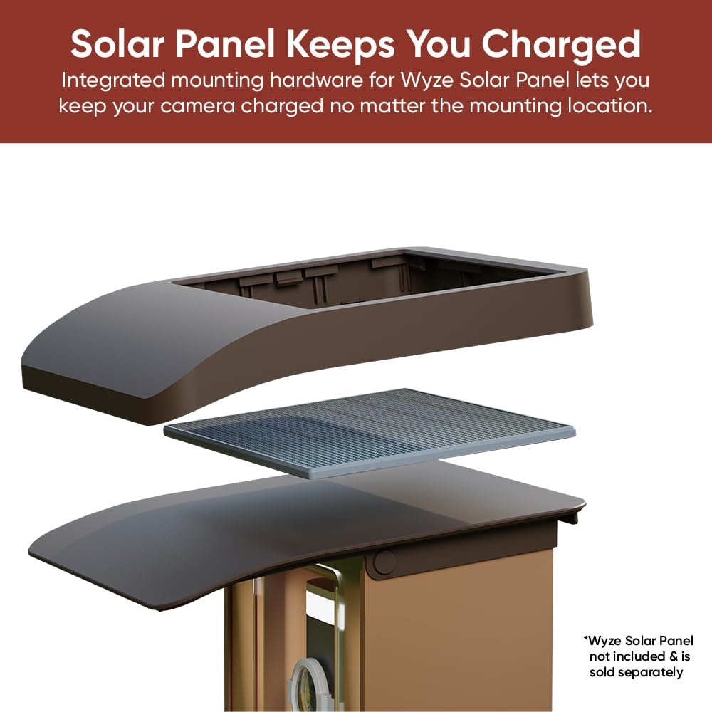 Compatible with Wyze Solar Panel (for battery cam setups): There's a designated space for a Wyze Solar Panel to minimize recharging for battery-powered cameras. (Wyze Solar Panel sold separately)