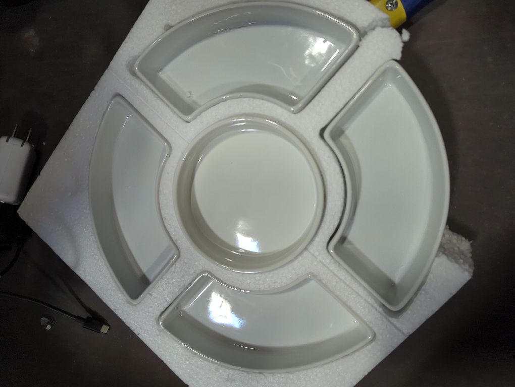 Perfect For House Party - There are five compartments for different types of food. You can serve chips and dip, candy, olives, nuts, fruit, veggies and various appetizers.High Quality and Durable : This multipurpose server is made of durable porcelain, a type of premium Lead-free ceramic, chip-resistant and more sturdy than stoneware. Safe for dishwasher, microwave, and freeze.Stylish Design and versatileThis serving dish set includes 4 bowls centered around a small condiment bowl, all which has a carved individual space on the big porcelain round tray. The pieces are all very substantial and durable with a simple, elegant look.