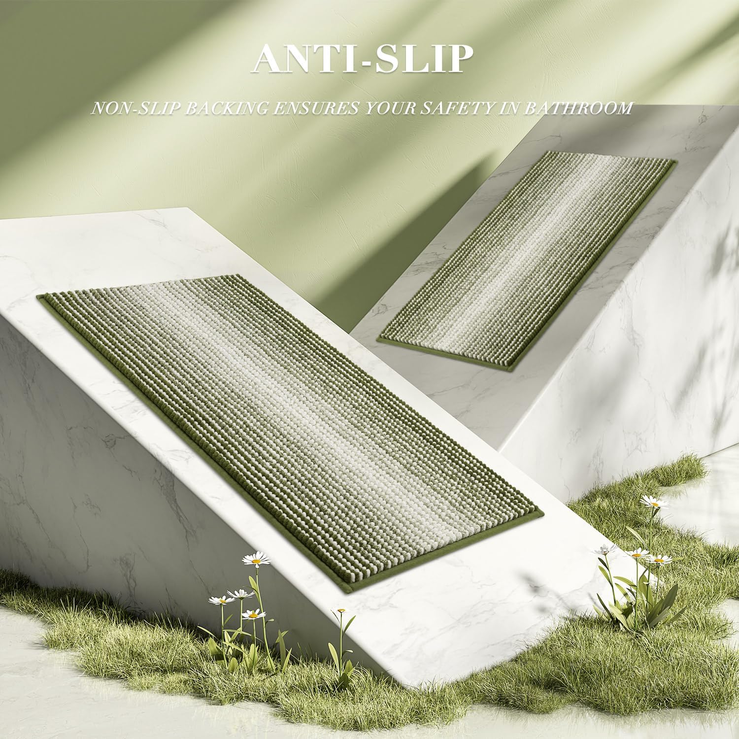 BSICPRO Bathroom Rugs and Mats Sets, 2 Piece Thick Absorbent Chenille Bath Mat Rug Set Non Slip, Soft Shaggy Bath Room Floor Mats for Bathroom, Machine Washable (Sage, 20" x 47" Plus 16" x 24")