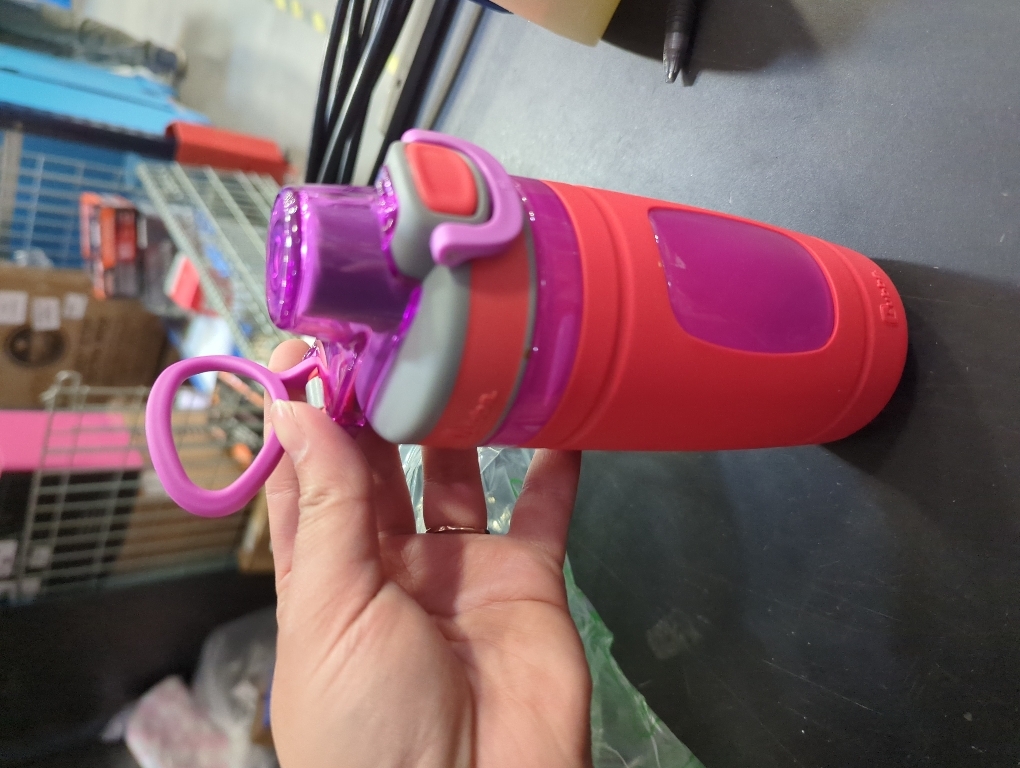 BPA-free water bottle is made of impact-, stain-, and resistant plastic