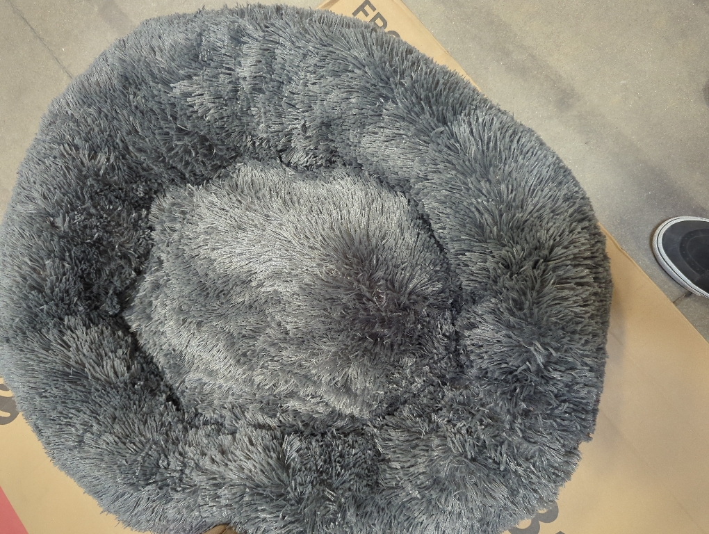 Calming Dog Bed for Small Dogs - Donut Washable Small Pet Bed, Anti-Slip Round Fluffy Plush Faux Fur Cat Bed, Fits up to 25 lbs Pets, Dark Grey