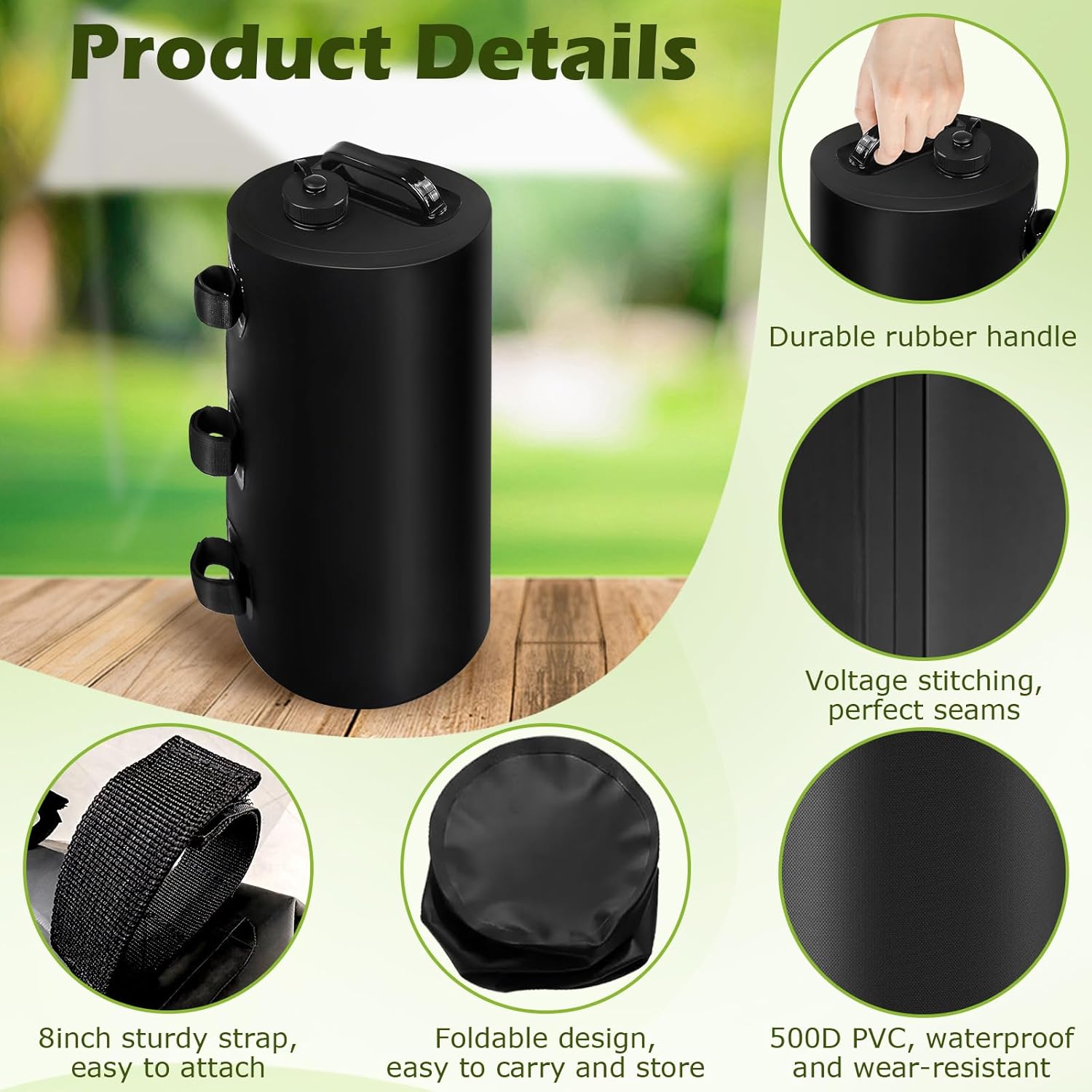 ????️???????????????? ???????? ???????????????? ???????????? ????????????????????????????????: These water weight bag are equipped with an easy-fill spout (water inlet Ø1.18"), screw cap, and handle, making it convenient to fill, install, and move them. After use, simply rinse clean and let dry, ensuring this tent weights are always ready for your next adventure