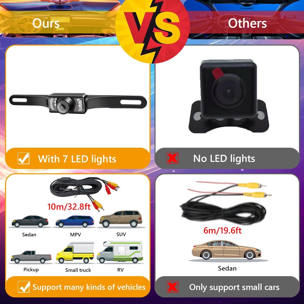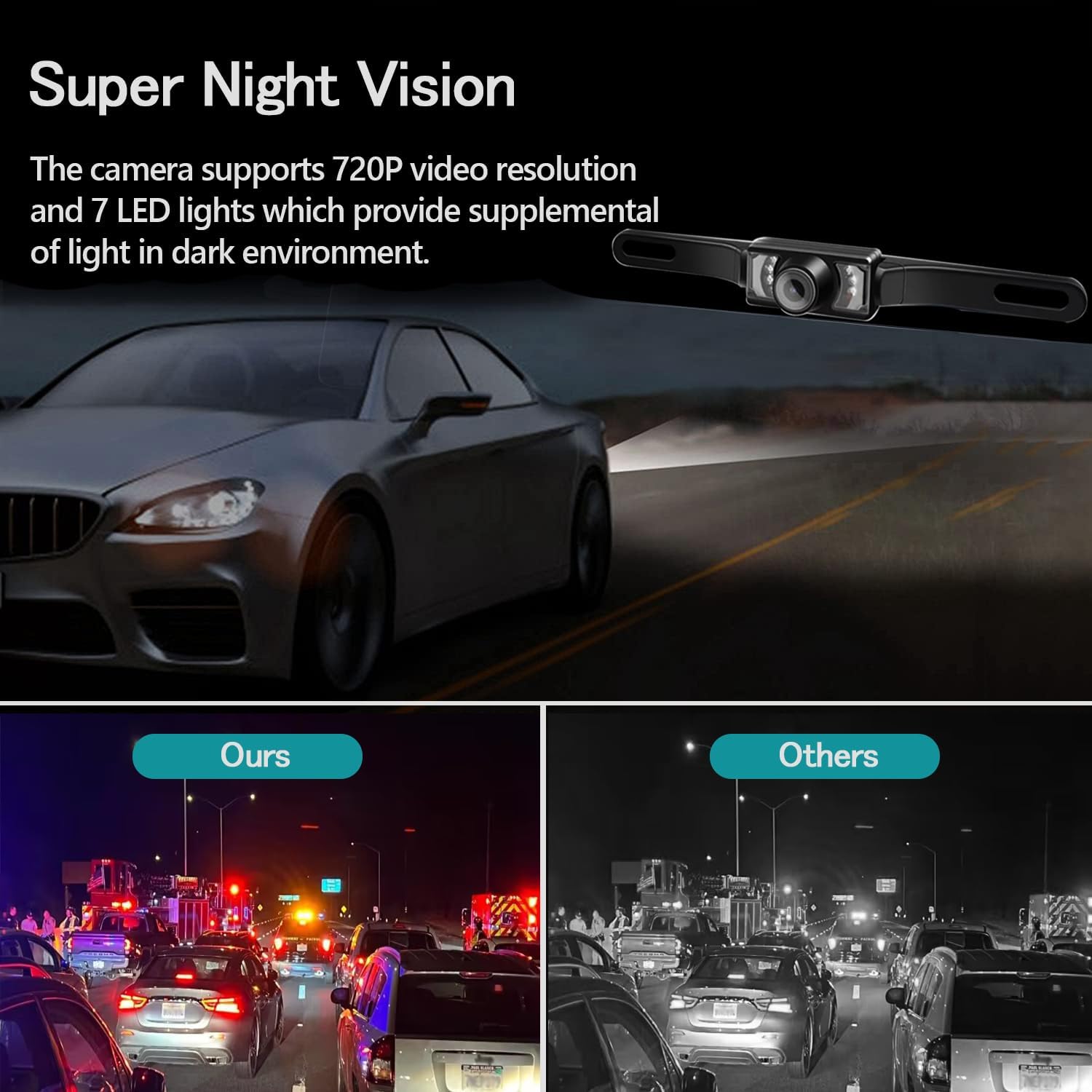 【7 LED & Superior Night Version】7 LED super bright lights illuminates the images when daylight is low, and greatly enhances night vision with sharp images. The sensor will turn on the light automatically when you activate the reverse gear, which gives you the best view for parking.