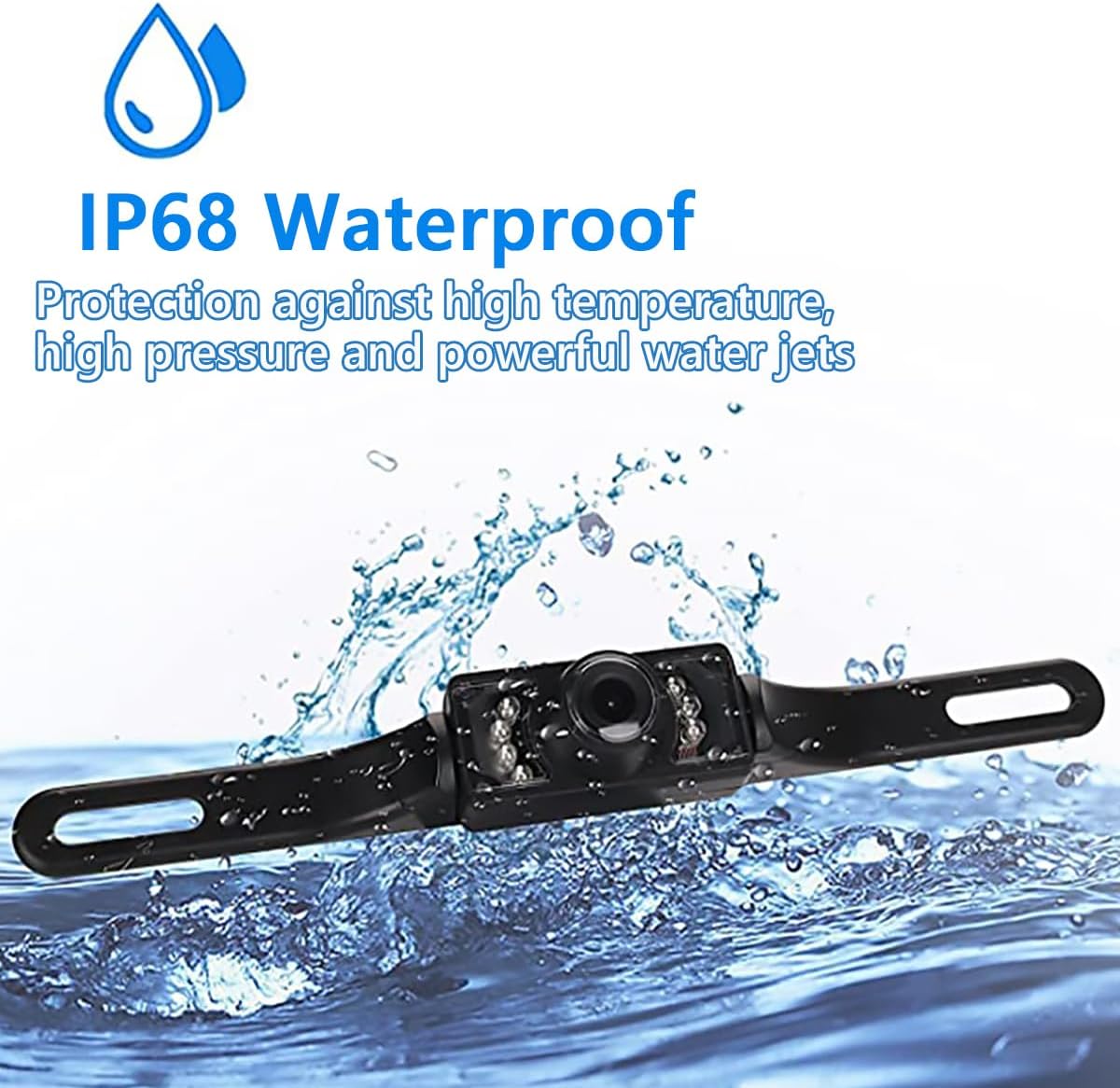 【IP68 Waterproof & 140° View Adjustable Angle】The camera will be protected from powerful jets of water from any direction, such as rain and a car wash. Works well in extreme weather. Adjustable vertical 140° perfect viewing angle, which allows you to adjust the camera to a position that’s best for you, effectively reducing the accident rate.