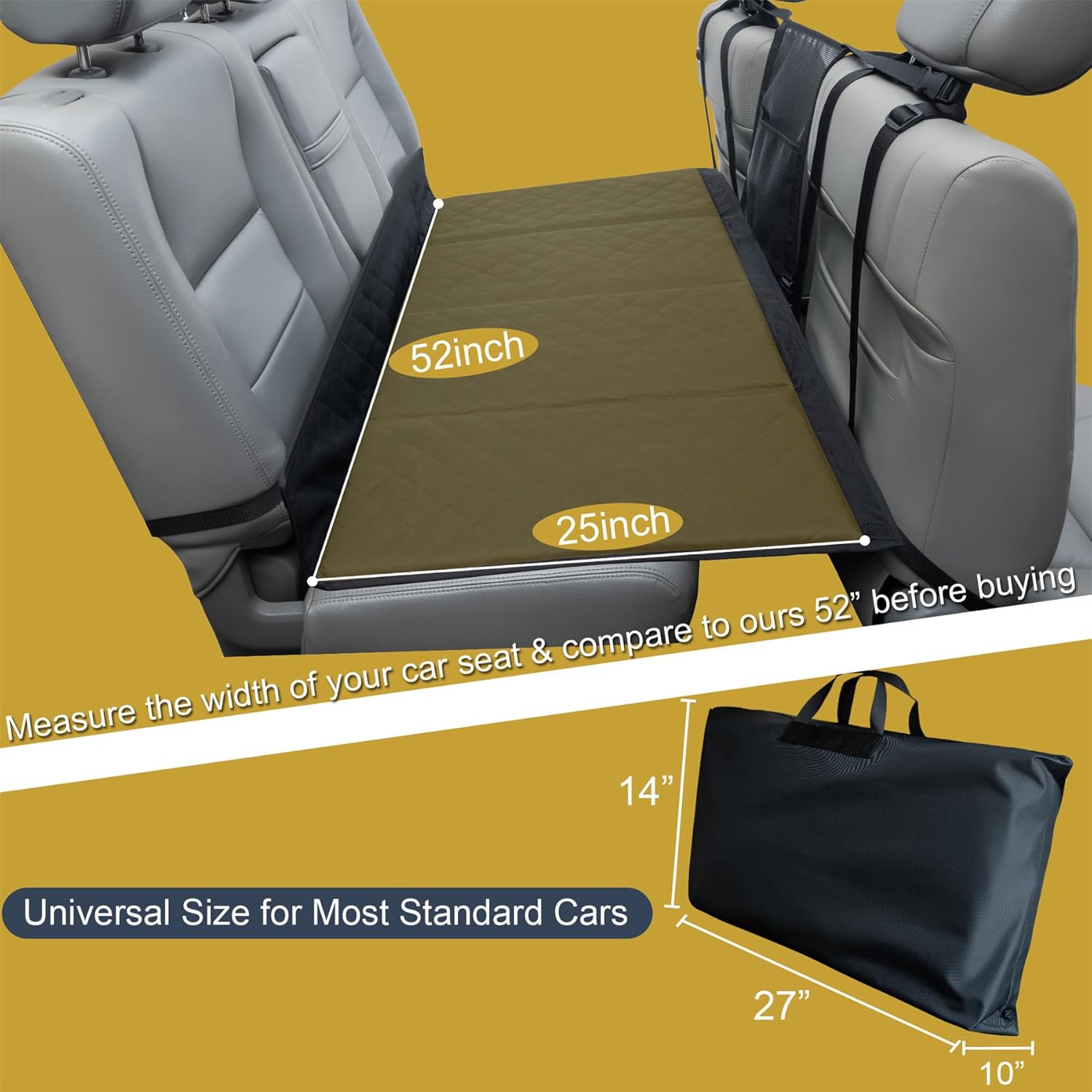 EASY TO INSTALL WITH UNIVERSAL FIT: Universal size 52” W fit for most cars, trucks and SUVs. Turn your back seat into a large and comfortable car bed for your dog. The insert board can be taken out easily. Clean the cover with a damp cloth or vacuum