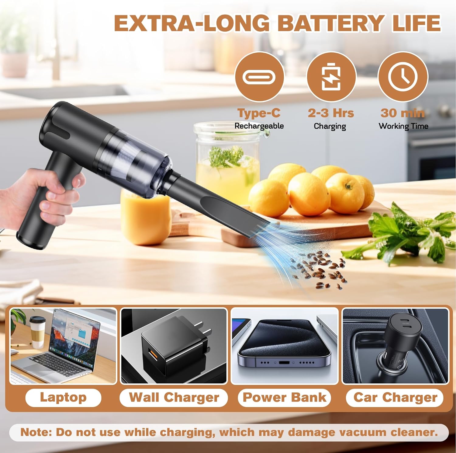 Car Vacuum Portable Cordless, 16000Pa Powerful Handheld Rechargeable Cleaner with Best Suction, Lightweight car vac with Brushless Motor and Multi-Nozzlesfor for Car, Home, Office, Pet