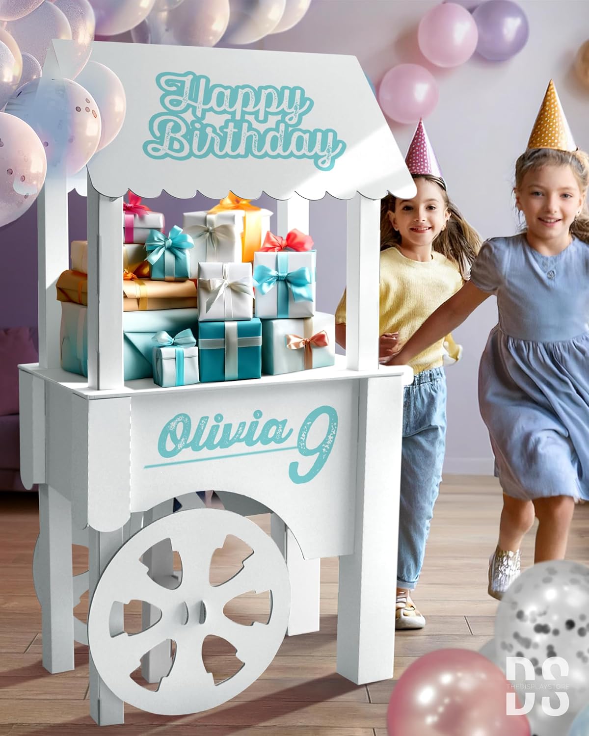 Cardboard Candy Cart for Parties - Dessert Display on Wheels - Party Decoration for Birthdays, Weddings, Baby Showers, and Bridal Parties