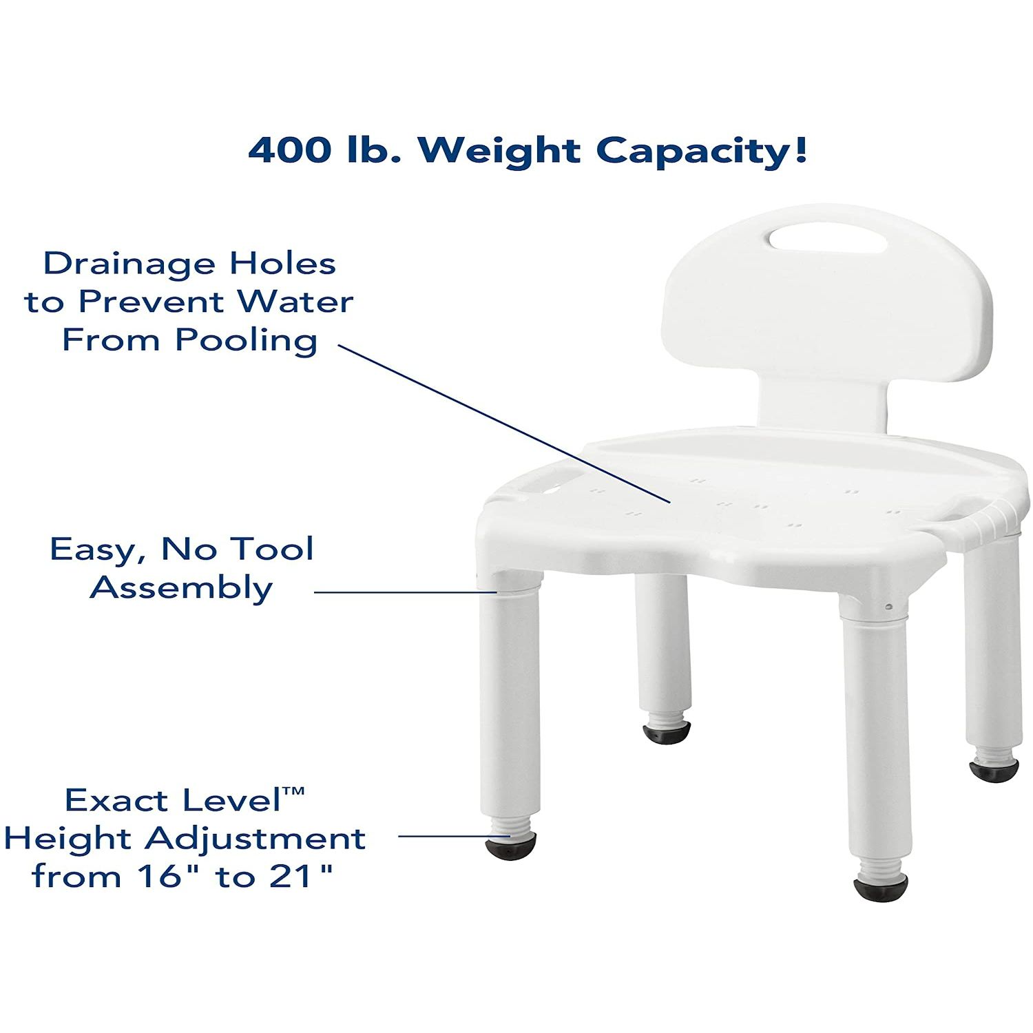 Carex Bath Seat And Shower Chair With Back For Seniors, Elderly, Disabled, Handicap, and Injured Persons, Supports Up To 400lbs