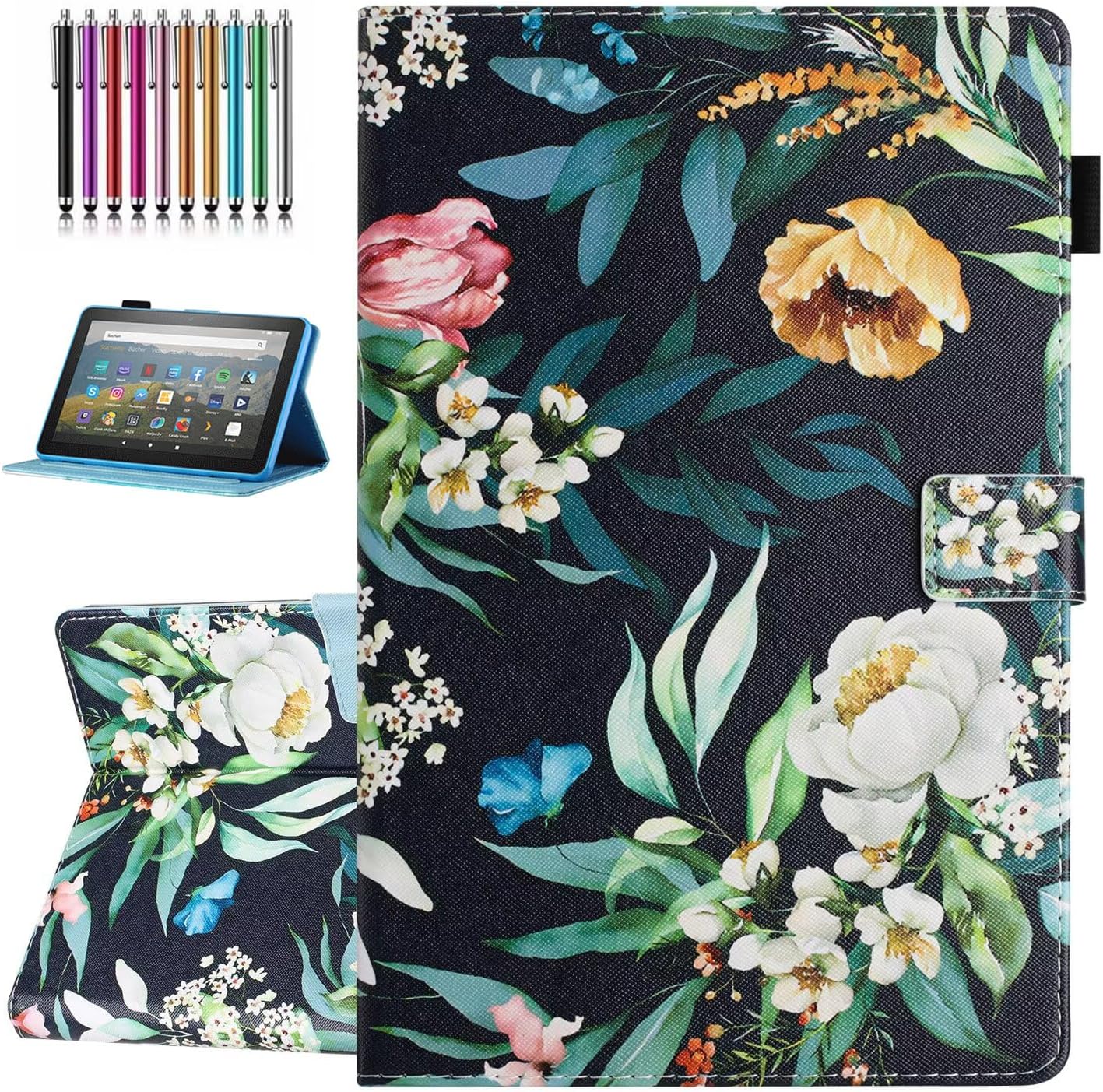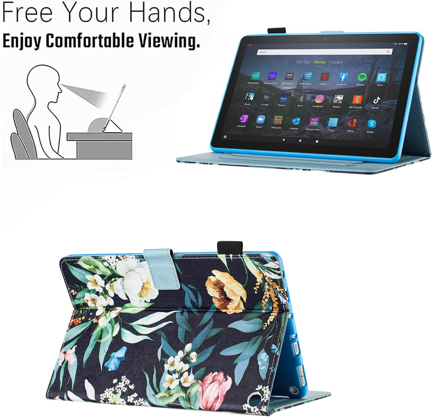 Case for All-New Amazon Fire HD 10 & 10 Plus (13th/11th Generation, 2023/2021 Release), Pen Holder, Premium PU Leather Stand Cover with Smart Auto Wake/Sleep, Peony
