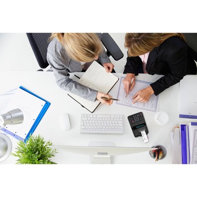 Casio HR-170RC Mini desktop printing calculator with a big easy-to-read display and a host of features. This Desktop printing calculator prints 2.0 lines per second with 2-Color printing and Cost/Sell/Margin functionality. Check and Correct up to 150 steps and print after correction. Clock and Calendar function prints time and date. Perfect for home and office use.  Adapter included.