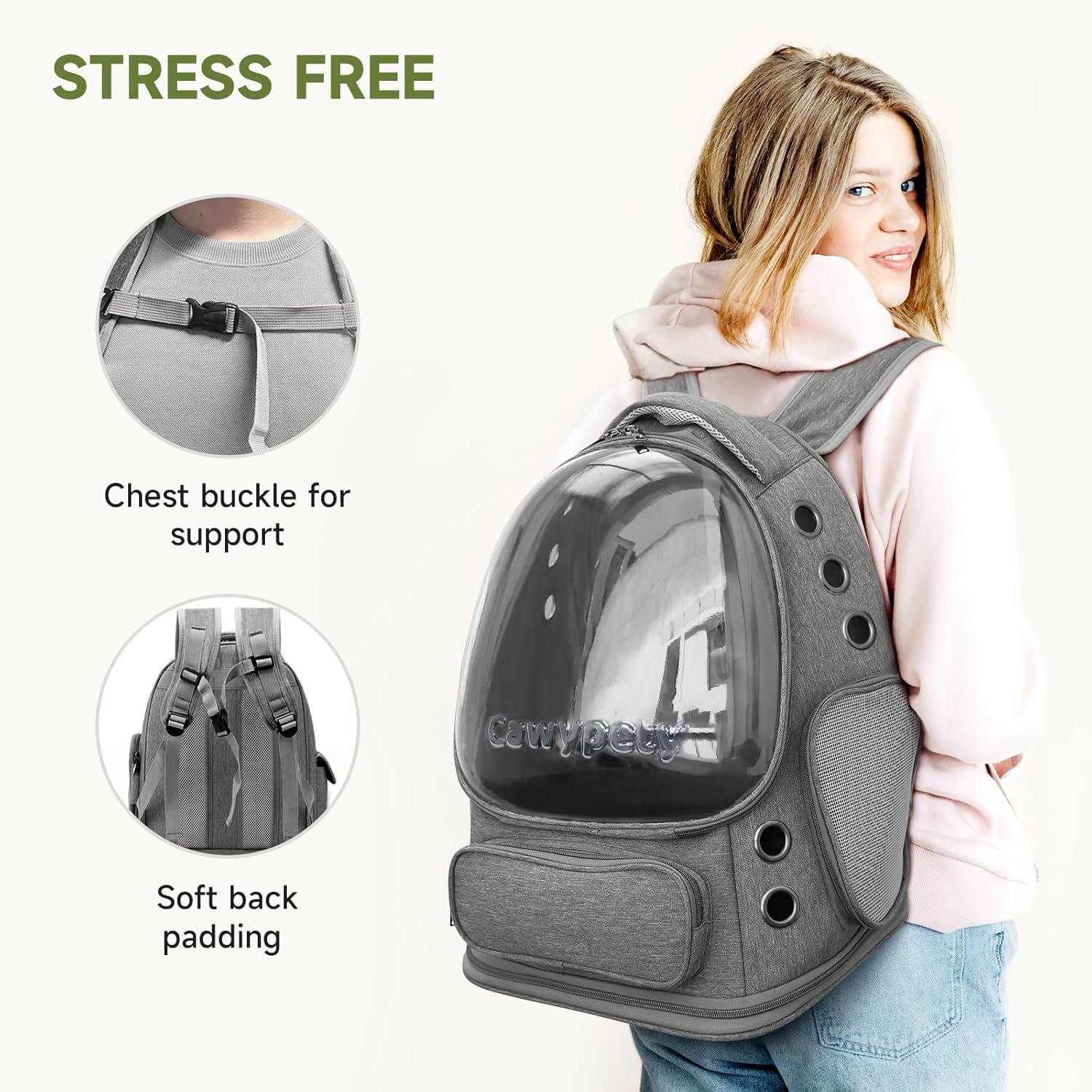 Cat Backpack Carrier, Breathable Cat Carrier Large Space Bubble Pet Backpack for Kitty Small Dog up to 12lbs, Transparent & Foldable Pet Carrier for Travel Hiking