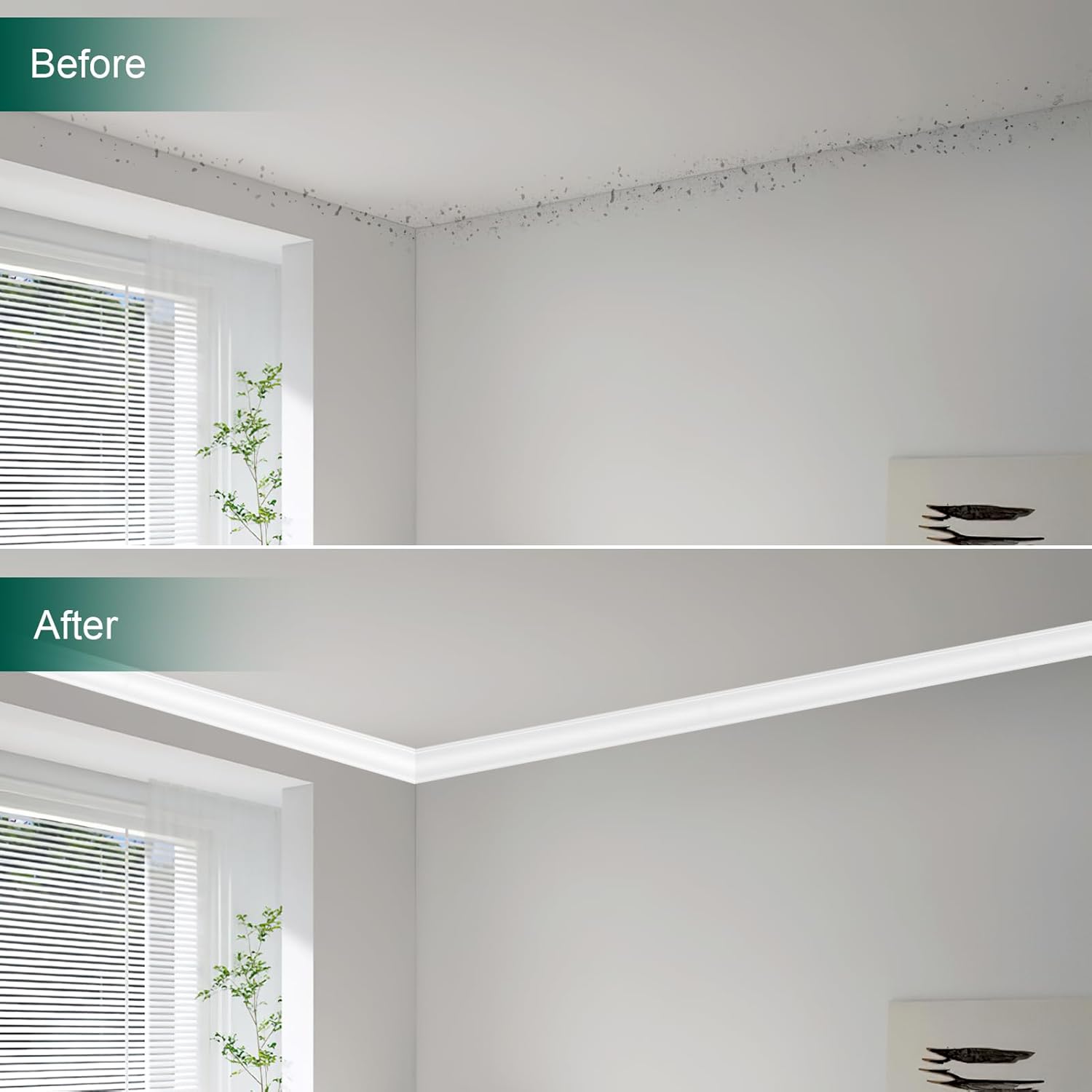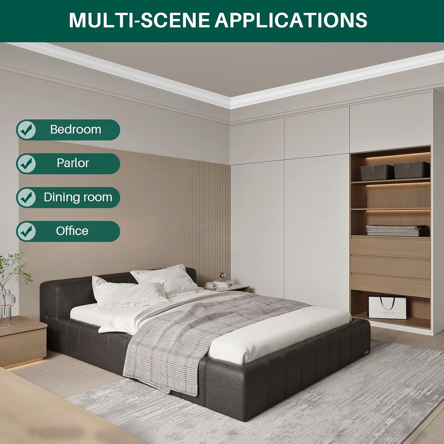 Home decoration: Ceiling crown moldings, elegant white, modern minimalist design style, smooth surface, can create a neat and beautiful living atmosphere for you. For perfect cutting of internal and external corners, Cuts easily with miter saw or a fine tooth hand saw using miter box.