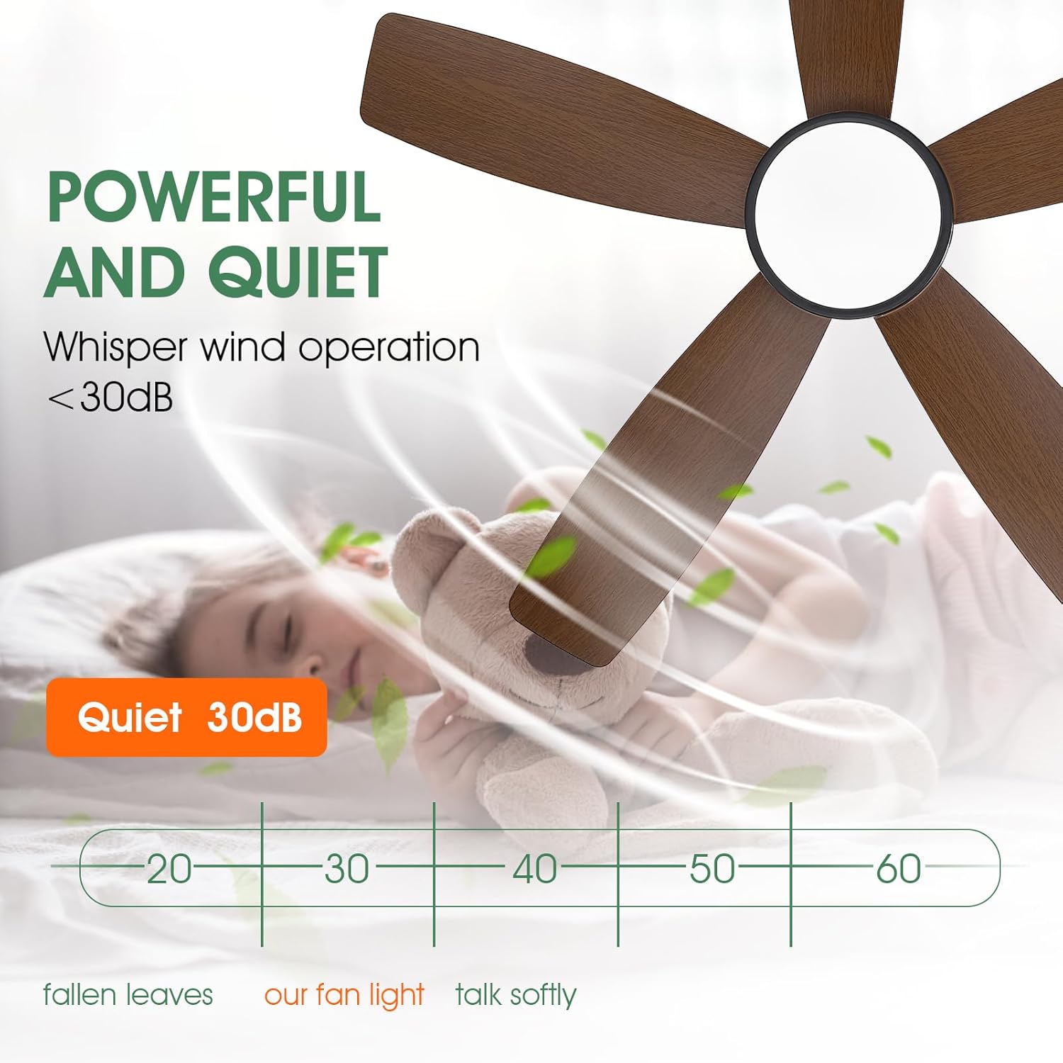 【Remote & APP Control】Super-convenient control ways, allowing you to control the fan and light without the need to stand up. With 6 speed wind, lighting adjustment, one-click on night light, 2-hour timing off (fan only), separate on/off lights or fans, etc. Able to meet your various needs, it is an ideal alternative to traditional fans or chandeliers. (Tips: APP download and instruction video are available on the product page)