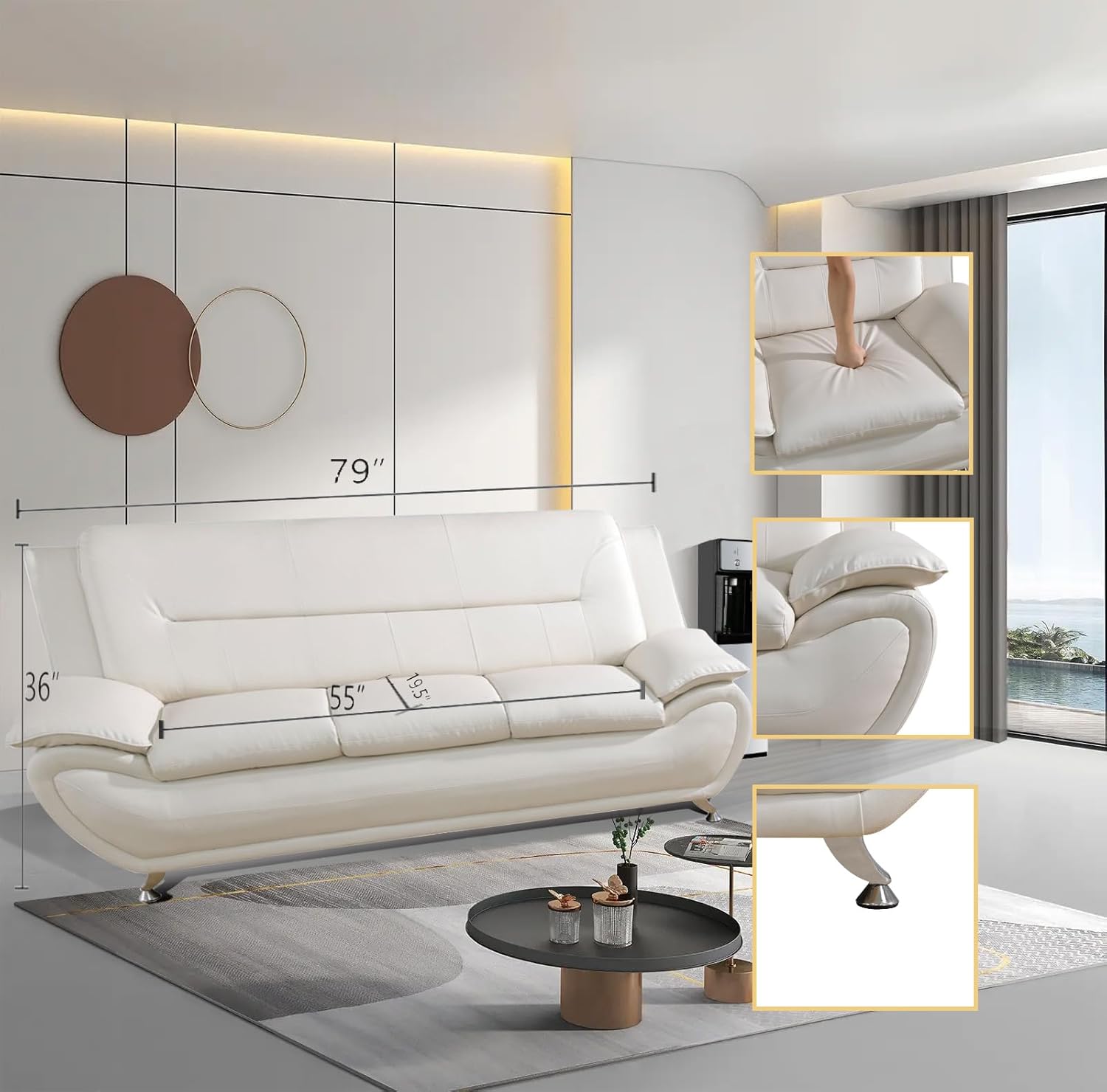 Ceitidh Faux Leather Living Room Sofa