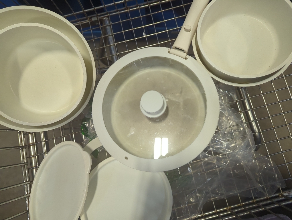 Cooking Set Include: 1pcs 8"Frying Pans, 1pcs 10"Frying Pans, 1pcs 3.3QT Saute Pan,1pcs 2.8QT Sauce Pan, 1pcs 2QT Sauce Pan, 2* Removable Handles, 8'' and 10"Glass Lids, Also use as tableware, bakeware, and dinnerware.