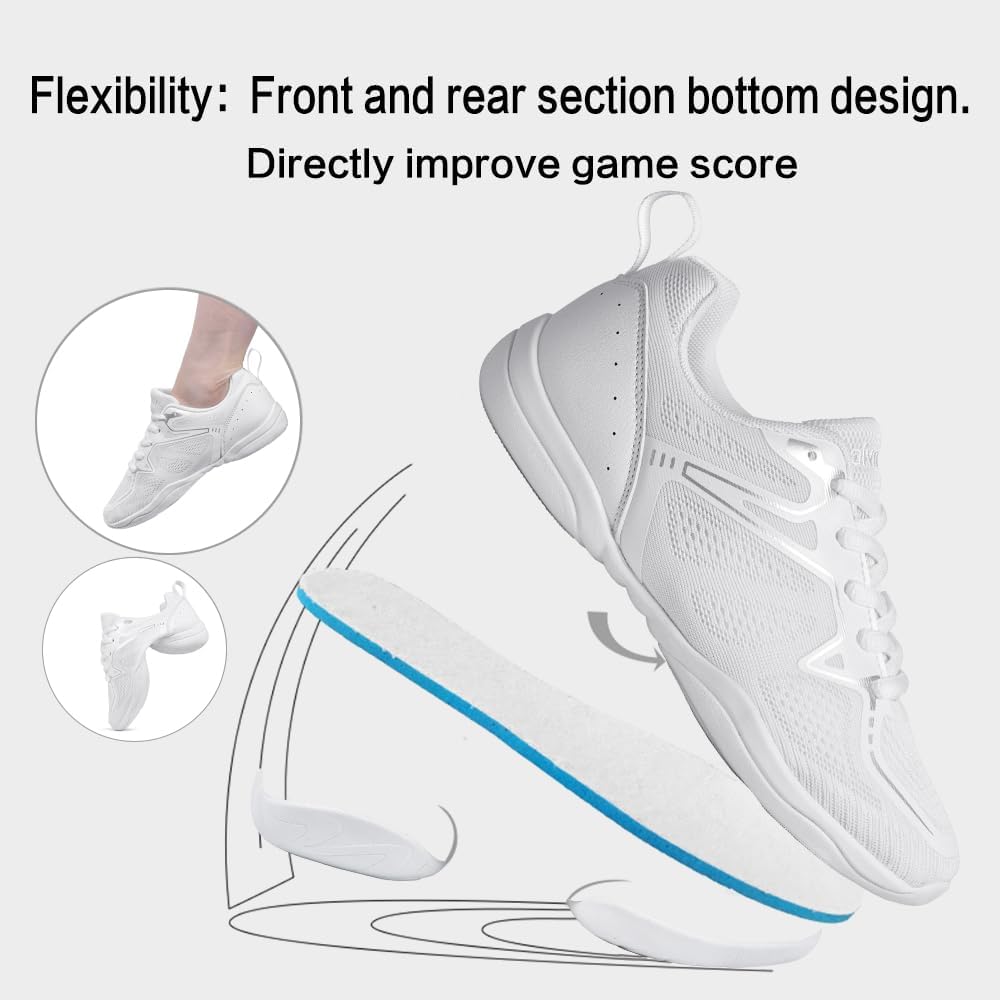 Breathable White cheerleading: Features soft breathable knit upper and mesh tongue, keeping your feet cool and comfort during rigorous cheerleading training.