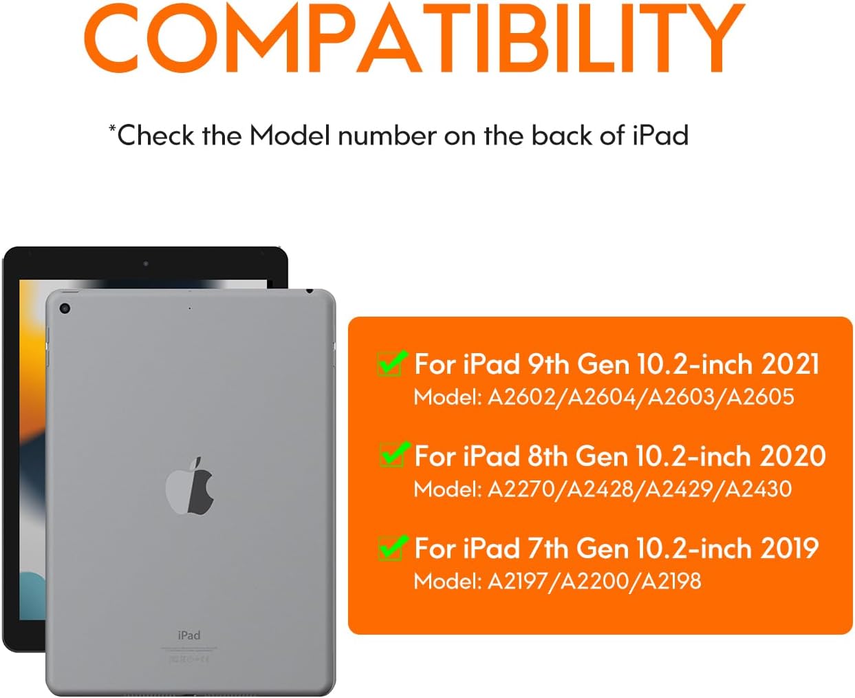 【Compatibility】CHESONA keyboard case is designed to fit the 9th generation tablet released in 2021 (model numbers: A2602/A2603/A2604/ A2605),8th 2020 released (A2430/A2270/ A2428/ A2429), 7th Generation 10.2 inch 2019 released (A2197/A2198/A2200).[Not including tablet and Apple Pen.]