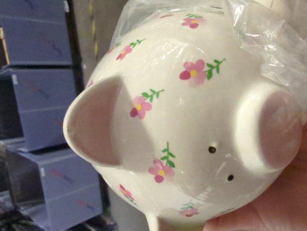 Child to Cherish Ceramic Piggy Bank for Girls, Posies and Polka Dots