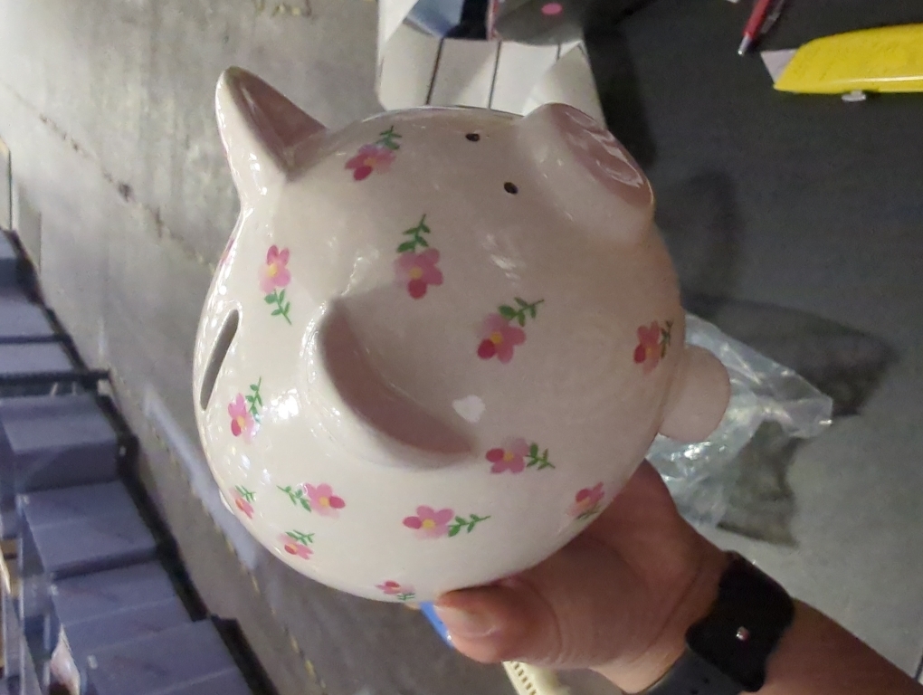 Beautifully glazed bank features a hand painted design. Made of high quality ceramic dolomite for a long lasting classic keepsake. Kids will love learning to save their money as they fill up this special bank.