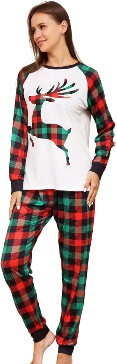 Christmas Pajama Large Sets Festive Plaid Deer Family Men Women Long Sleeves Long Pants Autumn Winter Holiday Casual Pjs