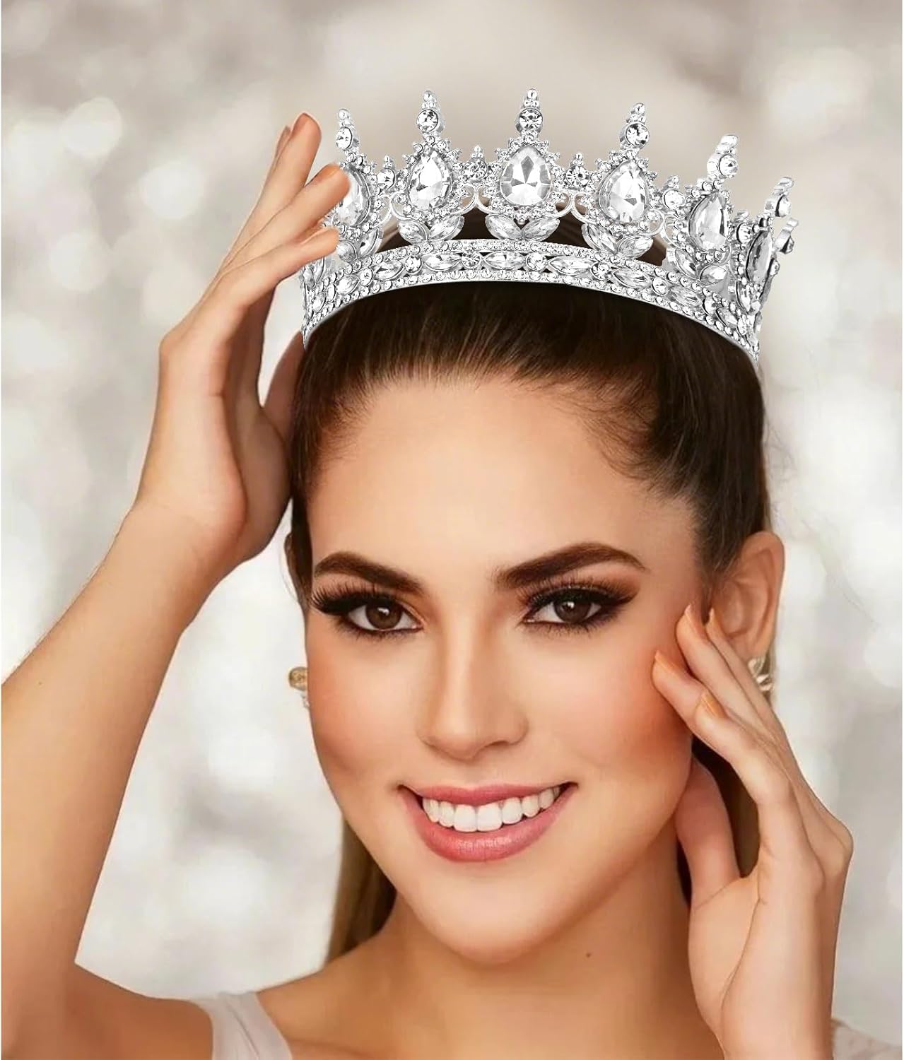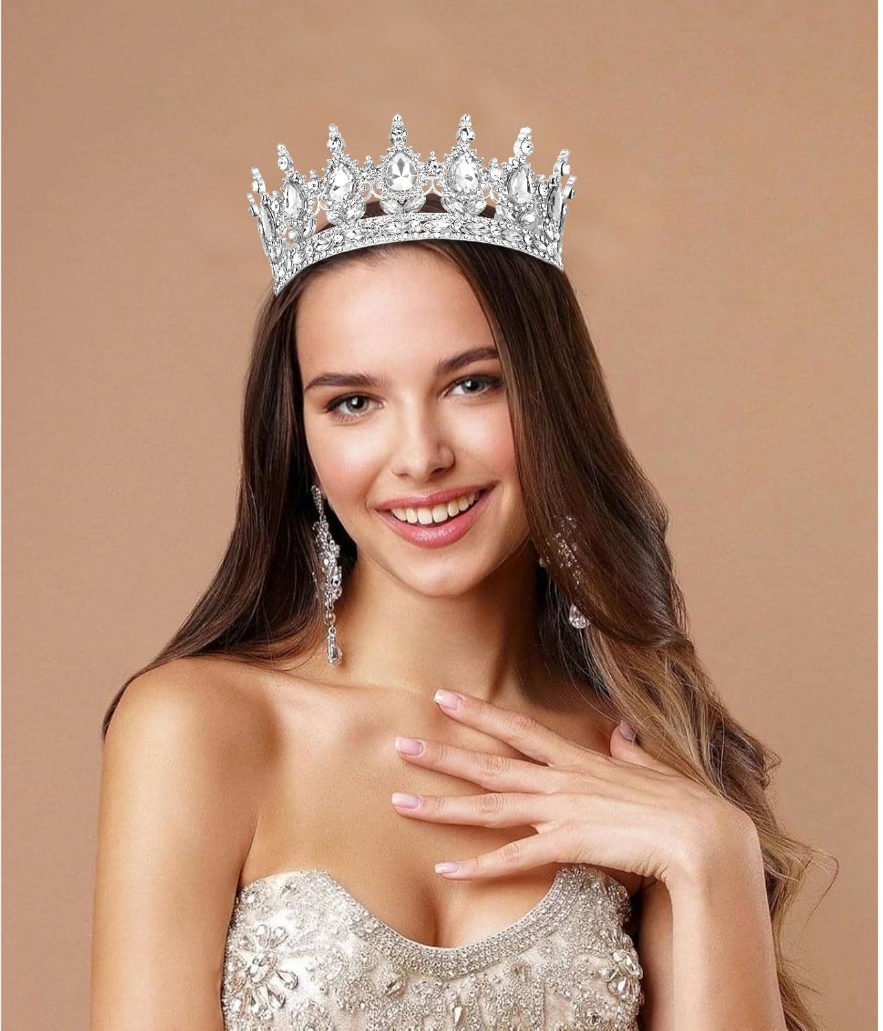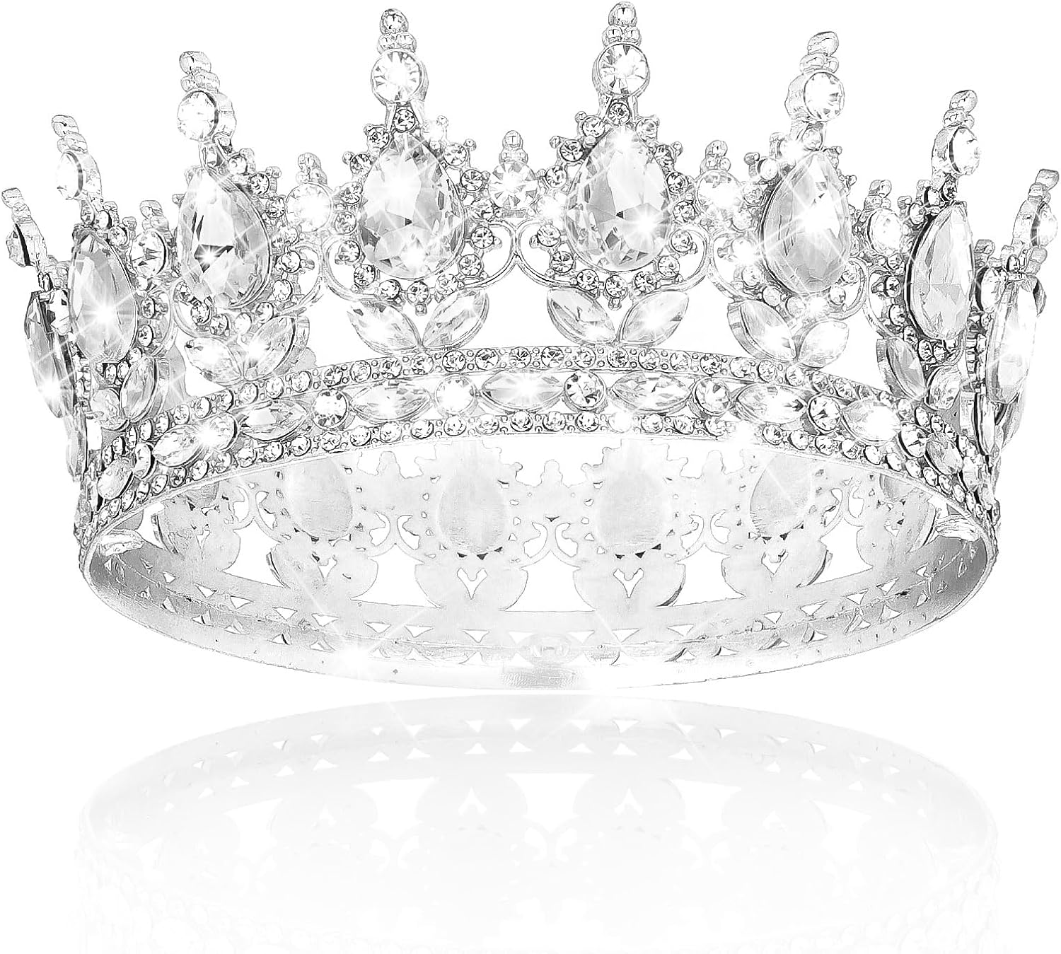 Royal - Worthy Sparkle. Loaded with hundreds of shimmering rhinestones in teardrop and round shapes—this crown practically glows! Perfect for weddings, proms, or any moment you want to feel like royalty