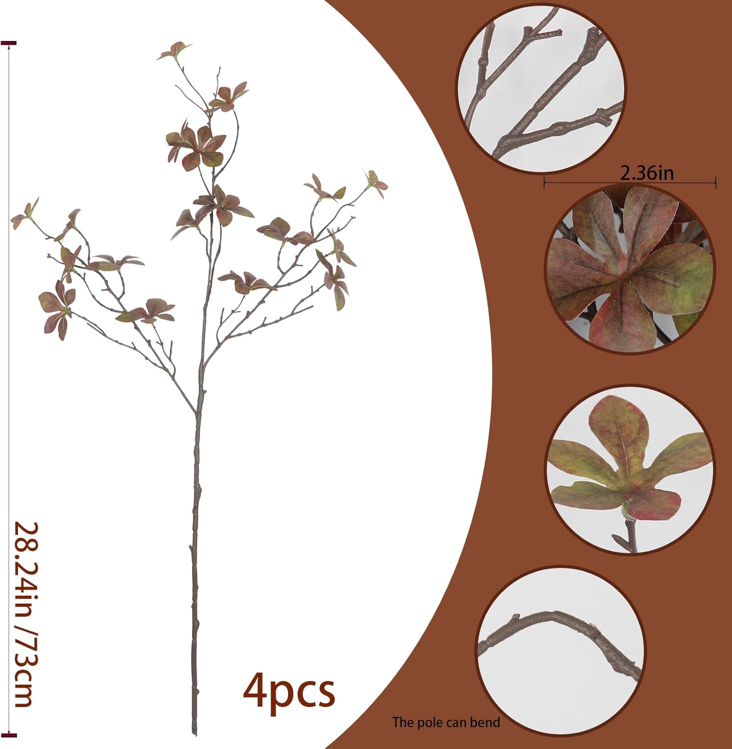 Made from high-quality silk, these artificial autumn leaves mimic real branches and come with four artificial green stems, each 28.24 inches/73 cm long. The stems contain wire that can be cut or bent to adjust the angle of the leaves.