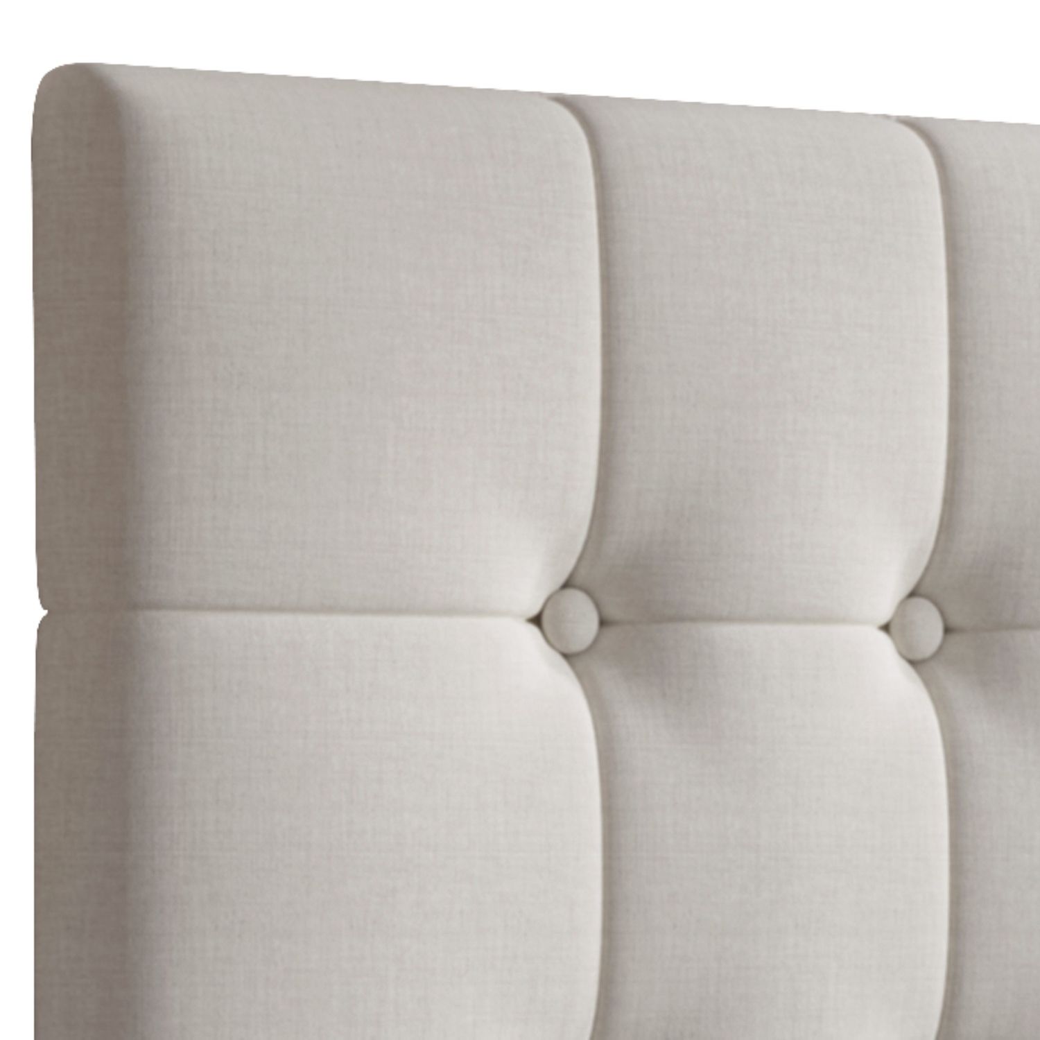 • The headboard is padded with foam and upholstered in 100% polyester linen with a textured layer for added durability.