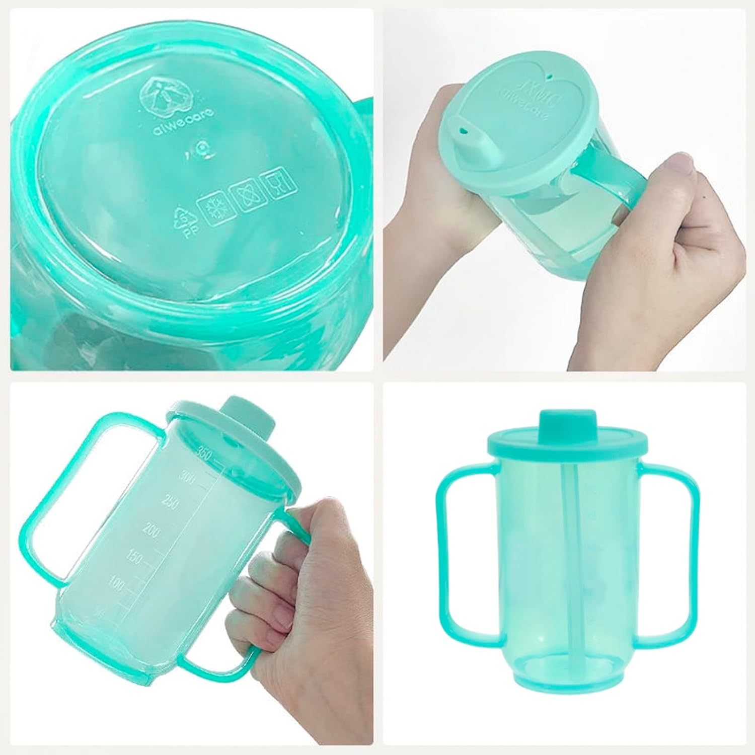 3. Clobeau Adult Sippy Cups for Elderly 350ml Sippy Cup with 2 Handles No Spill Adults Straw Cups Dysphagia for Disabled Patients Drinking Sippys Sip Handicap Cup for Hot Cold Beverages