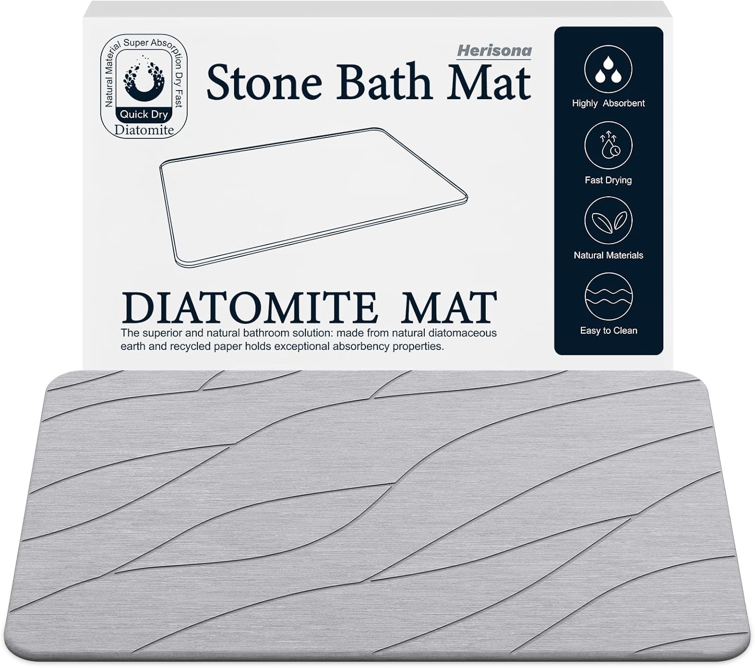 Closefriend Diatomaceous Earth Stone Bath Mat, Quick Dry Non-Slip Super Absorbent Diatomite Stone Mats for Bathroom (Light Grey 1 Pack)