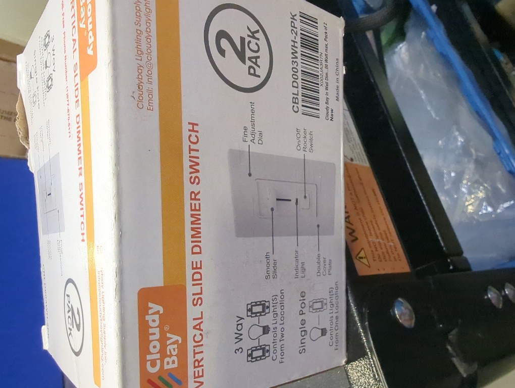 3-way single pole compatible slide control dimmer. If UP is off after wiring, try switching around the two red wires to reverse the on/off direction. Fully compatible with Cloudy Bay LED light fixtures, 600W max Incandescent, 150W max Dimmable LED/CFL, 120VAC, 60Hz. Works with LED, Halogen, Incandescent bulbs - Trim Dial below cover plate allows sensitivity adjustment upon installation to achieve compatibility with LED Lamps. Decorative wall plate and mounting screws included. UL Listed.