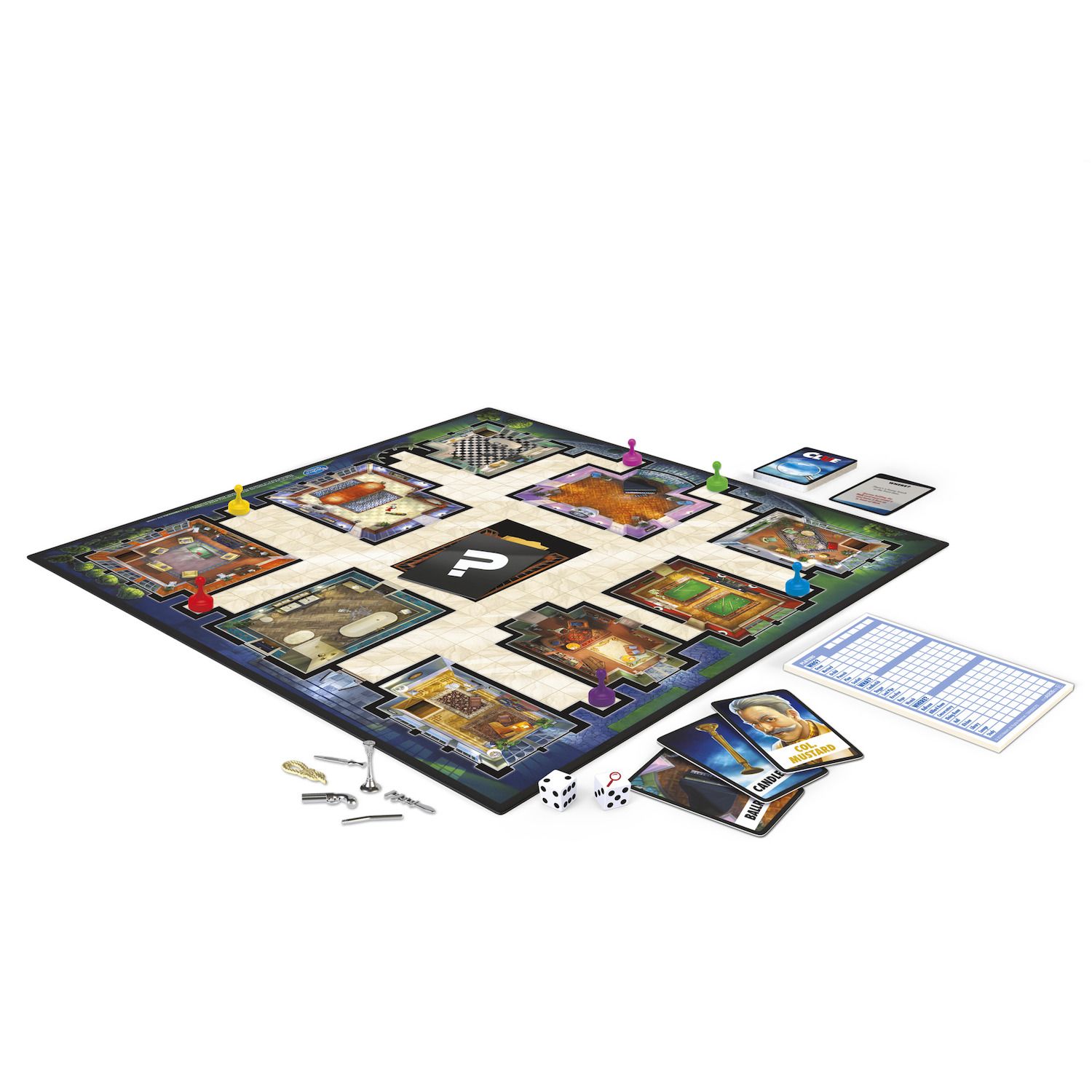 - Includes: 2-sided gameboard, yellow murder envelope, Clue sheet notepad, 6 character tokens, 6 weapon tokens, 27 black Clue cards, 3 red bonus cards & 2 dice