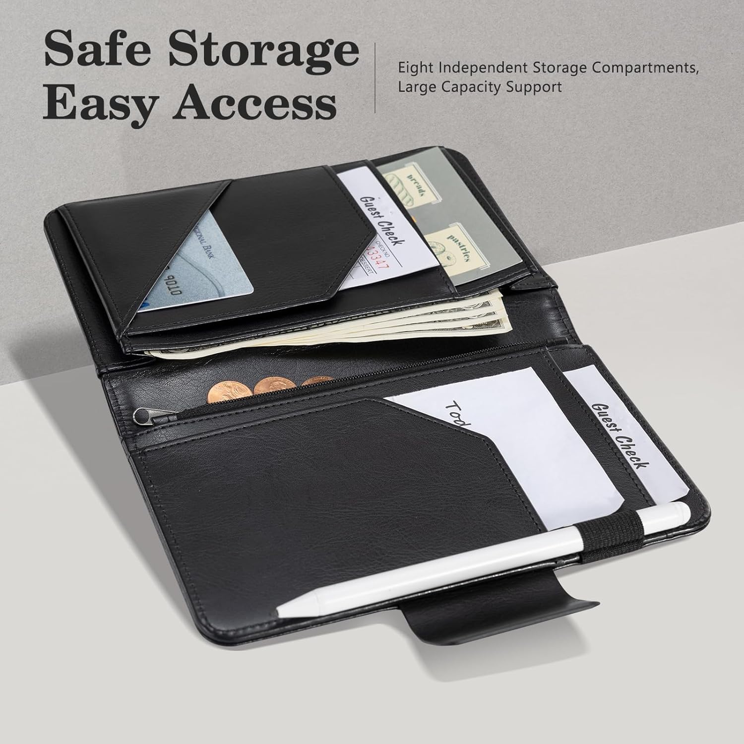 Smart Organization – 8 Compartments Pen Holder: Keep everything in its place with 8 compartments and a dedicated pen loop. The right side fits drink menus or guest checks for quick writing access, while the left side holds cash, cards, receipts, and business cards. Stay organized, efficient, and professional.