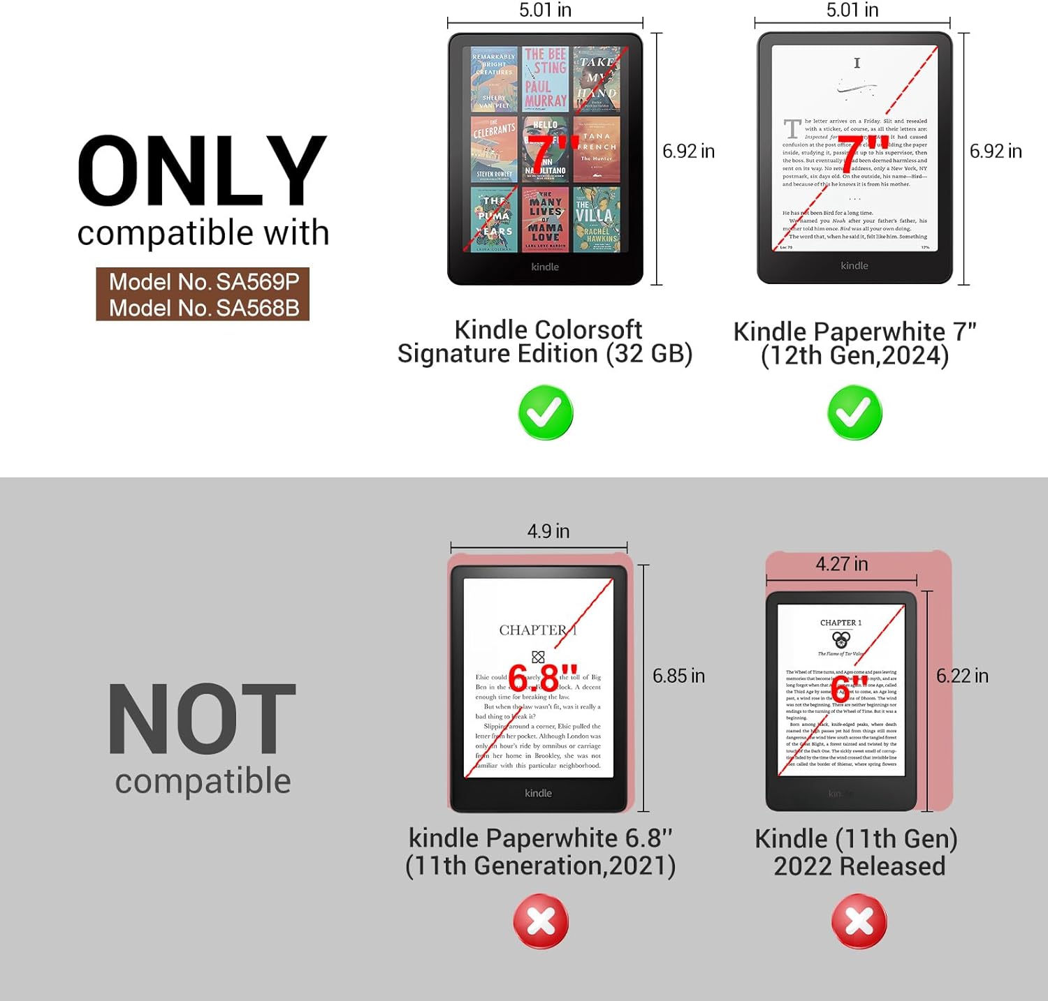 Model Specific Compatibility: Only fits Kindle Paperwhite 7" (12th Gen, 2024, SA568B SA569P) & Colorsoft Signature Edition. Not for 6.8" or 6" models. Check model number on the back of the device before buying.