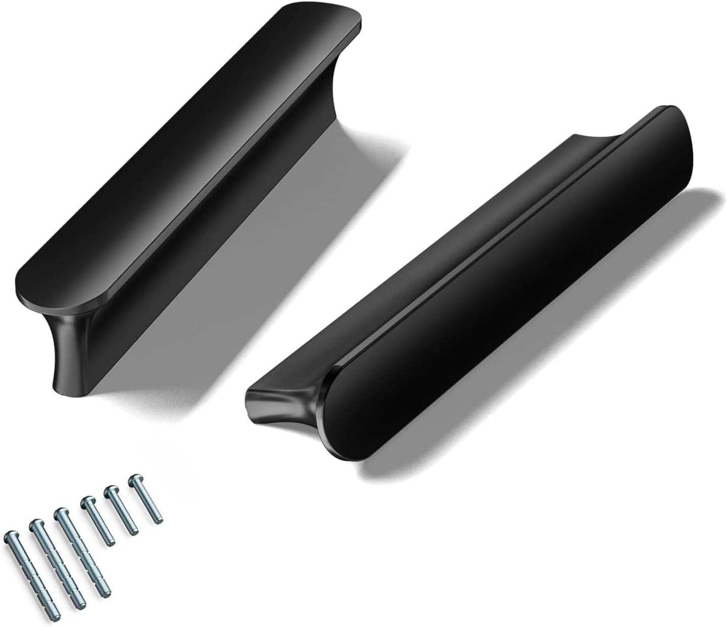 Superior Quality and Craftsmanship: Crafted from solid aluminum alloy with premium black plating. Advanced oxidation techniques make these pulls exceptionally rust-resistant, surpassing stainless steel in durability. The unique matte finish enhances longevity and provides a stunning black appearance. The black color is finer and smoother compared to our other products, offering a sleek and tactile feel. Ideal for drawers, wardrobes, and kitchen cabinets.
