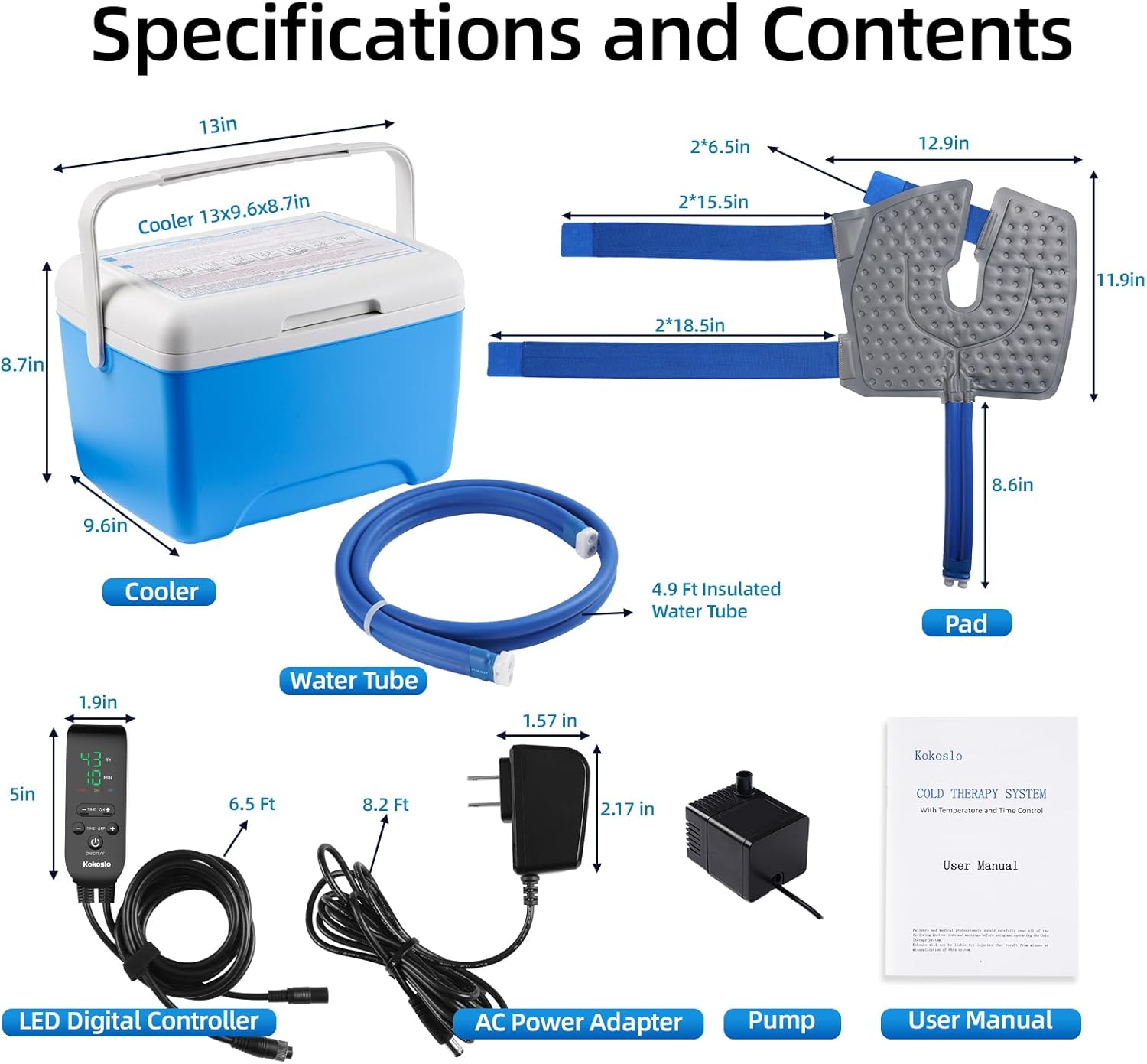 Cold Therapy Machine for Knee After Surgery - Ice Machine System with Timer & Temp Control, 12-Hour Ice Retention with 9Qt Fridge-Grade Cooler, Portable Quiet Pump for Home & Bedrest