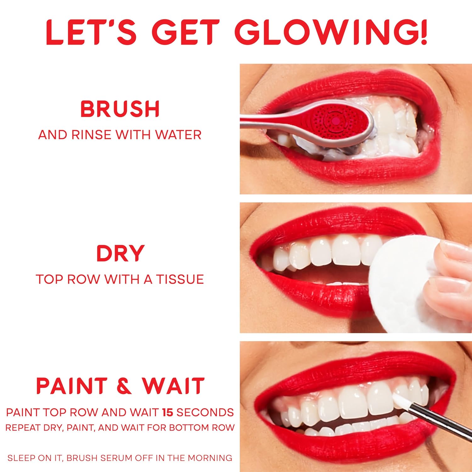 To use, dry your teeth after brushing and paint the whitening gel on each tooth, then let the gel dry overnight and brush your teeth when you wake up