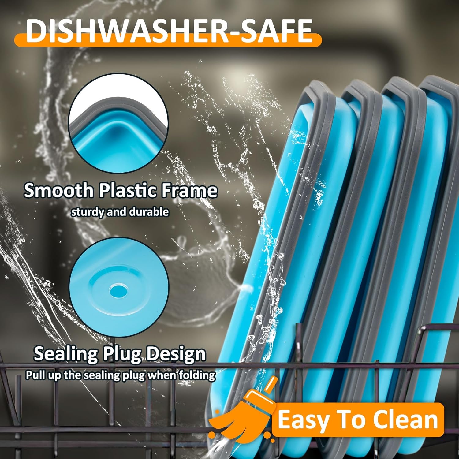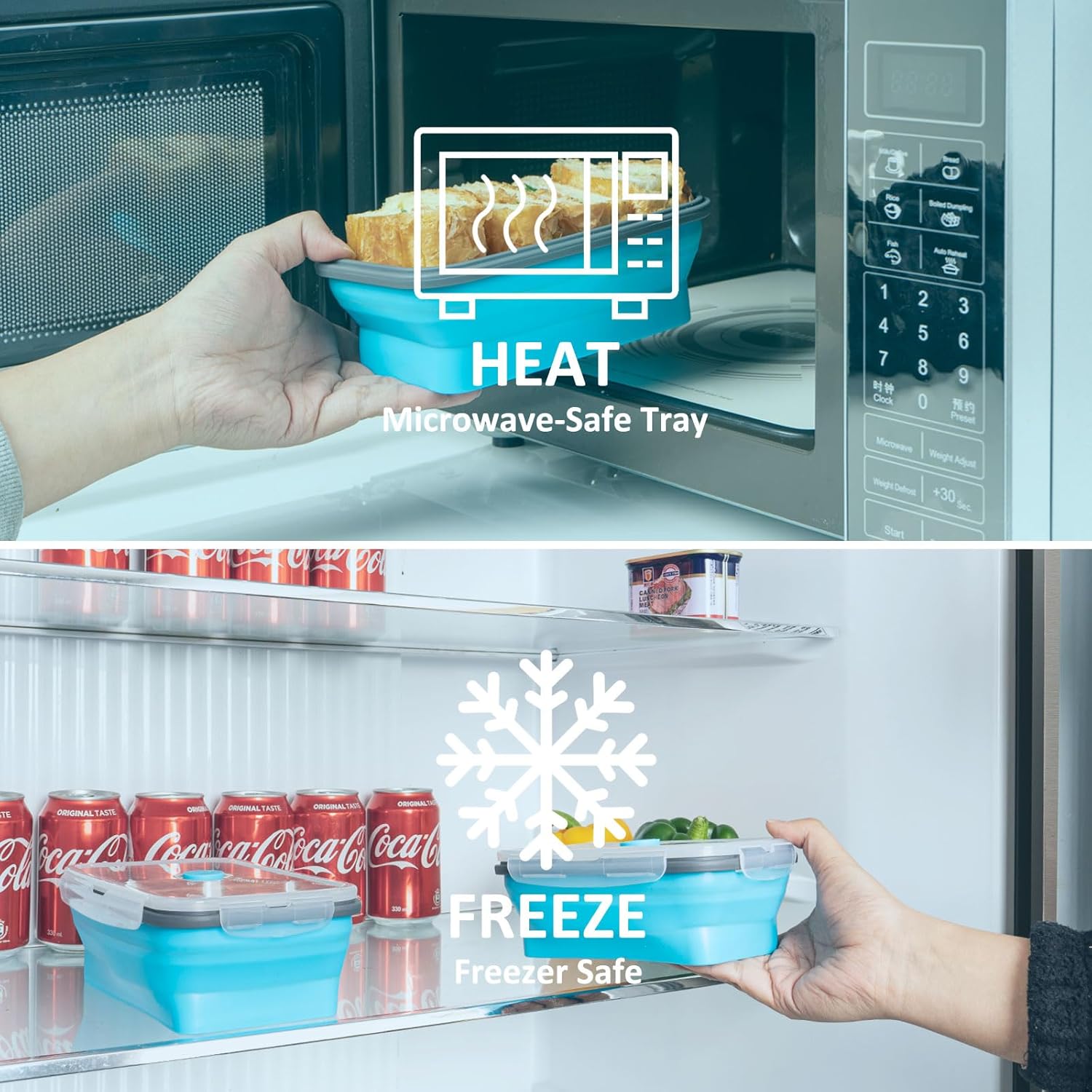 【MICROWAVE, FREEZER, AND DISHWASHER SAFE】Temperature tolerance of the kitchen collapsible containers for food is -4°F~428°F/-20°C~220°C. Microwave safe and freezer safe. Pull the air vent or remove the lid when heating. Place on the top rack of the dishwasher for easy cleaning