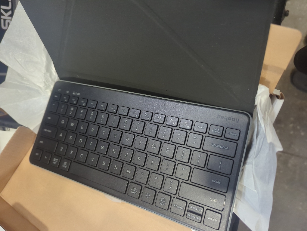 Color Black and grey Experience convenience of working with the Apple iPad Keyboard Folio from heyday™ in Black and Gray. This Bluetooth-enabled accessory is compatible with most tablets and phones with Microsoft Windows, macOS, and Google Chrome OS. The sleek design comes equipped with 2 AAA alkaline batteries, offering an impressive 536 hours of approximate battery life. Lightweight and compact, this keyboard is ideal for on-the-go use with membrane keys that offer a quiet and comfortable typing experience altogether. heyday™: Let your style speak volumes.