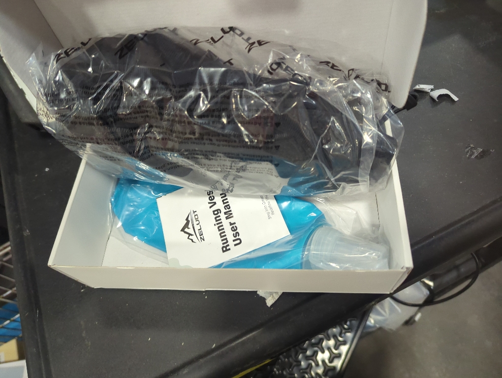 Color Black Hydrate on the Run - The running hydration vest comes with a 500ml soft flask that's 100% free from BPA and PVC. Softly bite to drink directly—hands-free hydration without interrupting your pace. Our running water bottle is uniquely crafted to shrink as you drink, combined with the drawstring tightening to ensure the water bottle doesn't slosh around, bounce or rattle.