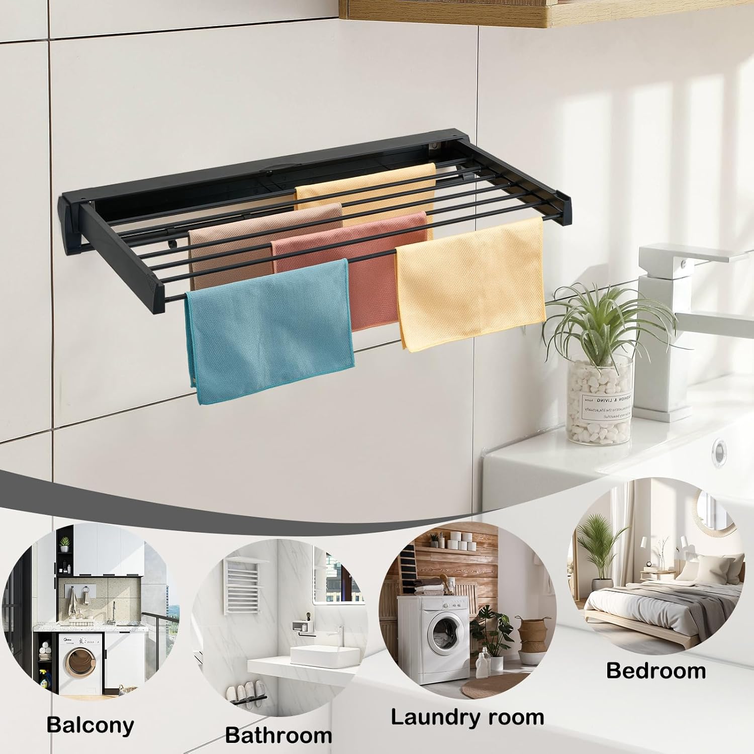 Color Black Wall Mounted Drying Rack, Aluminum Collapsible, 88 lbs Capacity, Foldable Laundry Rack for Drying Clothes