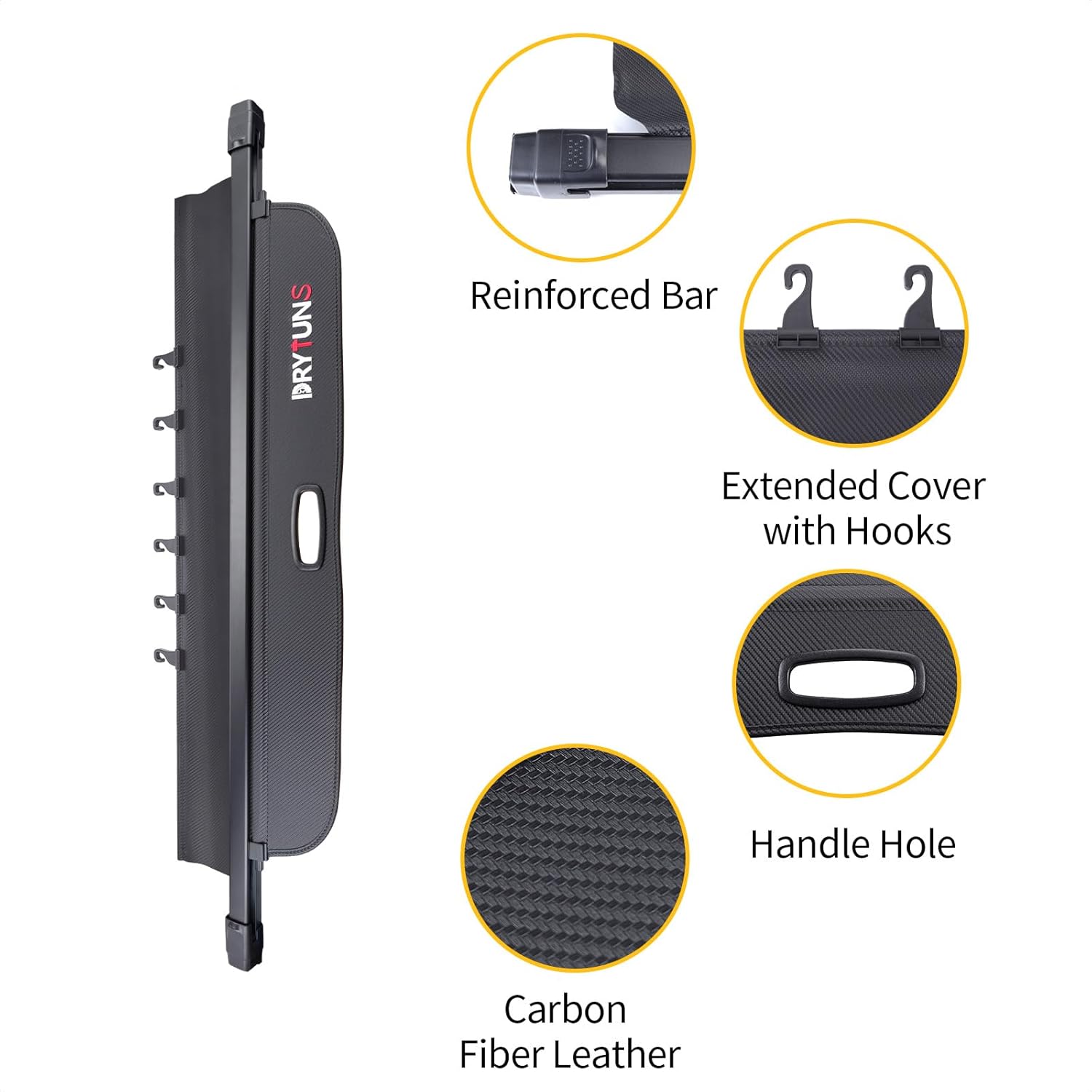 NOTE - Drytuns trunk cover is available in two versions: With Hooks / Without Hooks. And the version With Hooks has an extension and 6 hooks - the extension can be used to cover the gap between the rear seats and the trunk for a better and complete coverage; while the 6 hooks can be used to fasten the cargo cover to the rear seats, which makes the trunk lid even more secure when installed. Please select the version that best suits your needs.
