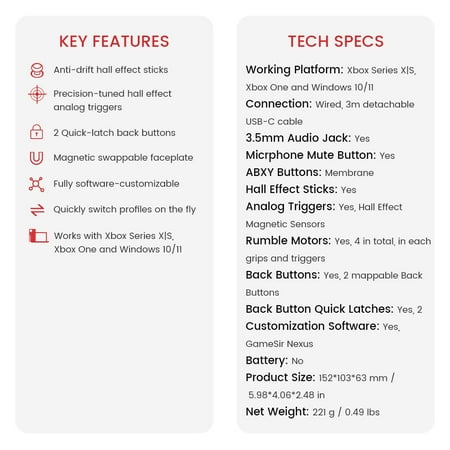 New Open box for inspection Color Blue Versatile Compatibility: Supports Xbox Series X/S, Xbox One X/S consoles, and PC Win10 and above (including the Steam game platform). Precise Control: Features Hall Joysticks and Hall trigger for comfortable feel, long life, and enhanced gaming accuracy. Plug-and-Play Convenience: USB wired connection (detachable) for easy setup and instant gaming without the need for additional drivers. Customizable Experience: Includes 2 custom back keys, allowing users to eliminate false triggers and enhance their gaming experience. Immersive Gameplay: Offers pulse type vibration trigger motor and asymmetric vibration grip motor for immersive tactile feedback. Enhanced Audio and Comfort: Equipped with a 3.5mm audio interface for seamless connection with gaming headsets and an ergonomic grip with ultra-fine laser engraved texture for comfortable and non-slip gaming sessions.