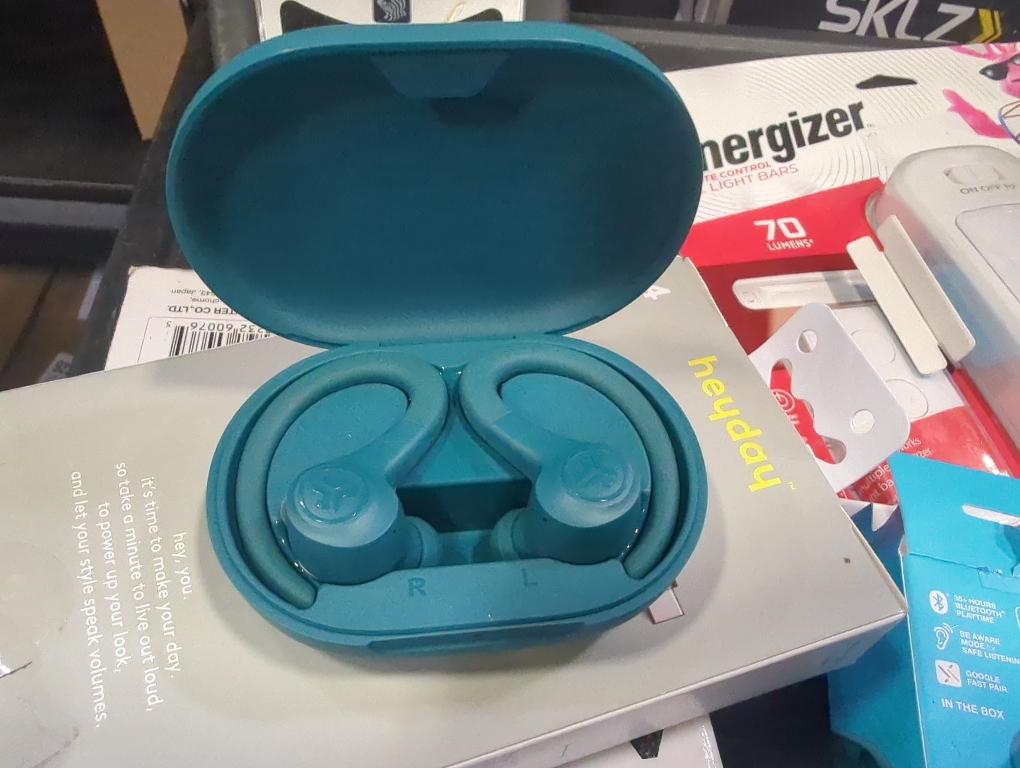 New open box for inspection Color Blue Power through your hardest or easiest workout. With 35 hours of total playtime and our smallest sport fit ever, the GO Sport are mighty (and fun). Auto connect to your device to walk, run, HIIT or talk on-the-GO. 35 hours Bluetooth playtime. Customize your sound experience via JLab App. IP55 sweat and splashproof. Smaller earhook sport design. Be Aware Mode for safe listening. Made in China