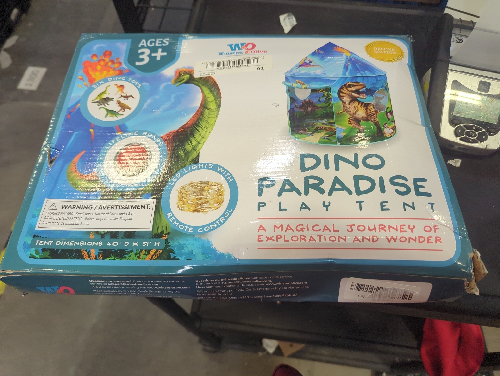 Missing toys Color blue n- Dinosaurs come to LIFE in this big kid & toddler tent with our lifelike ROAR button with 6 different sounds! Also includes 6 BONUS dino toys, and LED lights with remote control. It’s no wonder W&O are winners of the Mom's Choice Award & Family Choice Award.