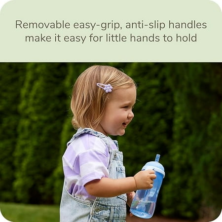 Color Blue - 100% soft silicone weighted straw follows liquid in the cup, so your little one can drink from any angle - Helps make the transition from bottle or soft spout sippy cup to sippy cup with straw easier - Easy-grip, anti-slip handles are easy for baby to hold and removable as baby grows - Soft straw is designed to be gentle on gums while allowing liquids to flow easily when sipped, yet is spill-proof for fewer messes - Air vent helps reduce the amount of air baby swallows, helping to minimize gas - BPA-free and dishwasher-safe - Recommended for ages 8 months and older