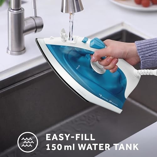 Color Blue Sunbeam Compact Steam Iron, 1200 Watts, Non-Stick Soleplate, Powerful Shot of Steam, Horizontal or Vertical, Spray Mist, Precision Tip, White/Blue