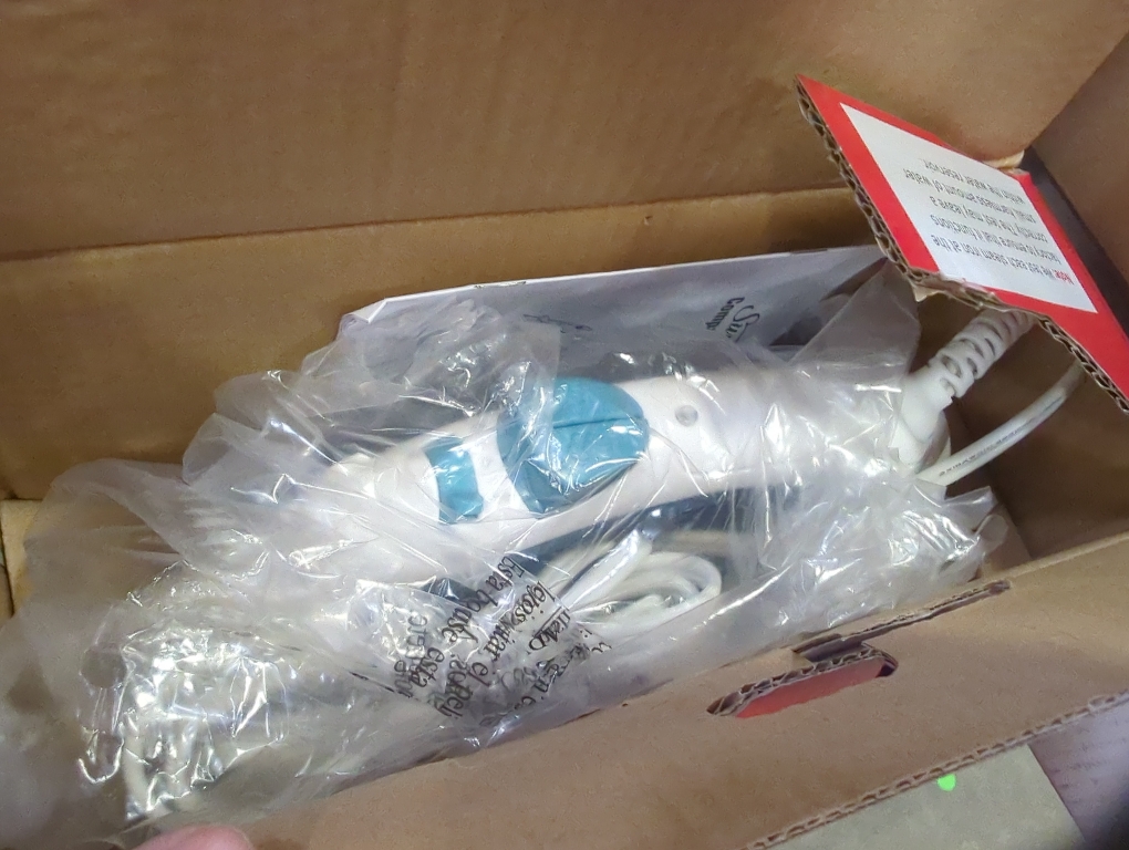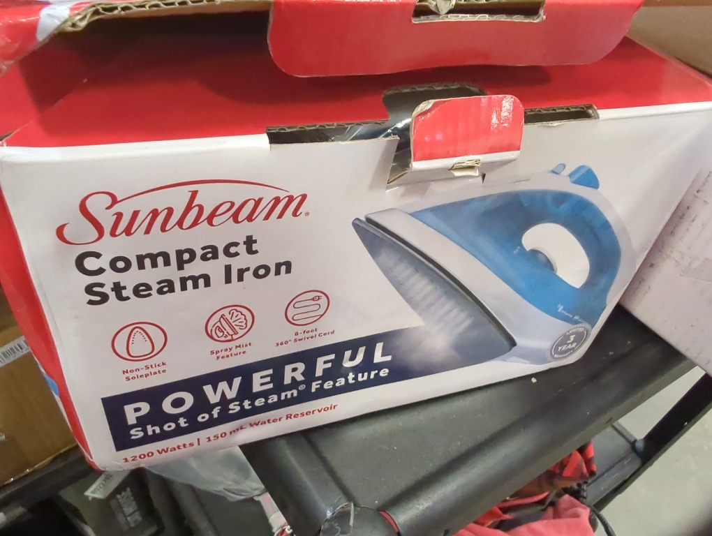 New Open box for inspection Color Blue Sunbeam Compact Steam Iron, 1200 Watts, Non-Stick Soleplate, Powerful Shot of Steam, Horizontal or Vertical, Spray Mist, Precision Tip, White/Blue