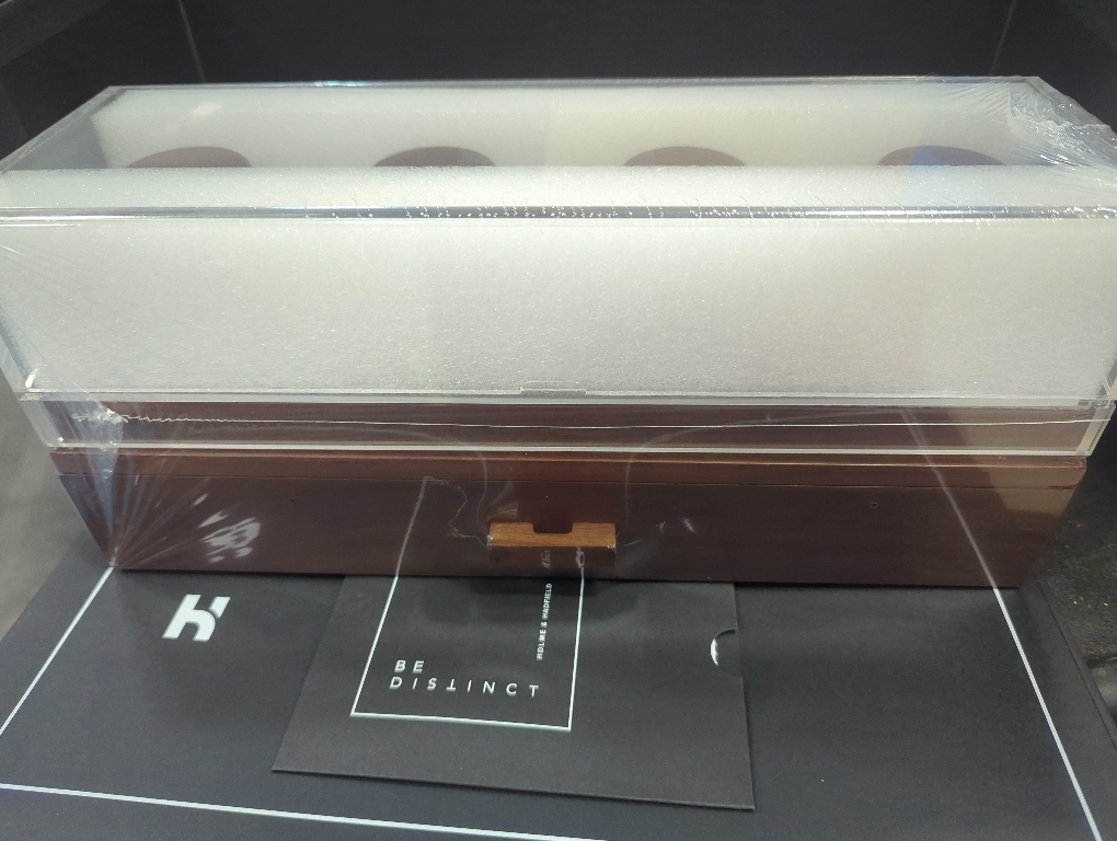 New Open box for inspection Color brown Holme & Hadfield SHOW OFF YOUR WATCHES — Why collect nice watches just to stick them in a drawer?! The hinged acrylic cover on this wooden men’s watch box allows you to proudly display your favorite accessories anywhere you want. (It’s okay to show off.)
