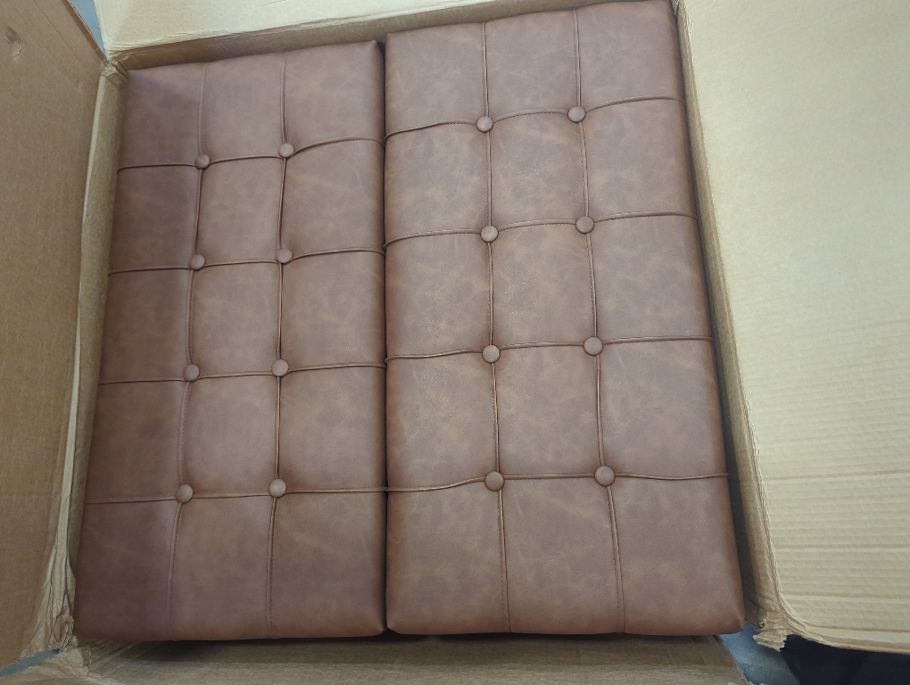 New Open box for inspection Color brown Aesthetic and stylish Decor: The square leather ottoman is made of high-density foam and faux leather fabric material, the top tufted button decoration, and the bottom metal rivets locking edge craftsmanship, showing the elegant mid-century style