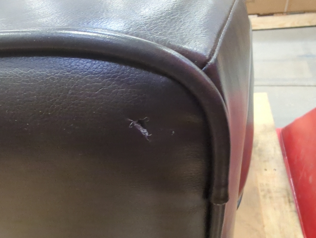 Small cut on top right side of chair arm Color dark grey Solaris Gray Leather Arm Chair